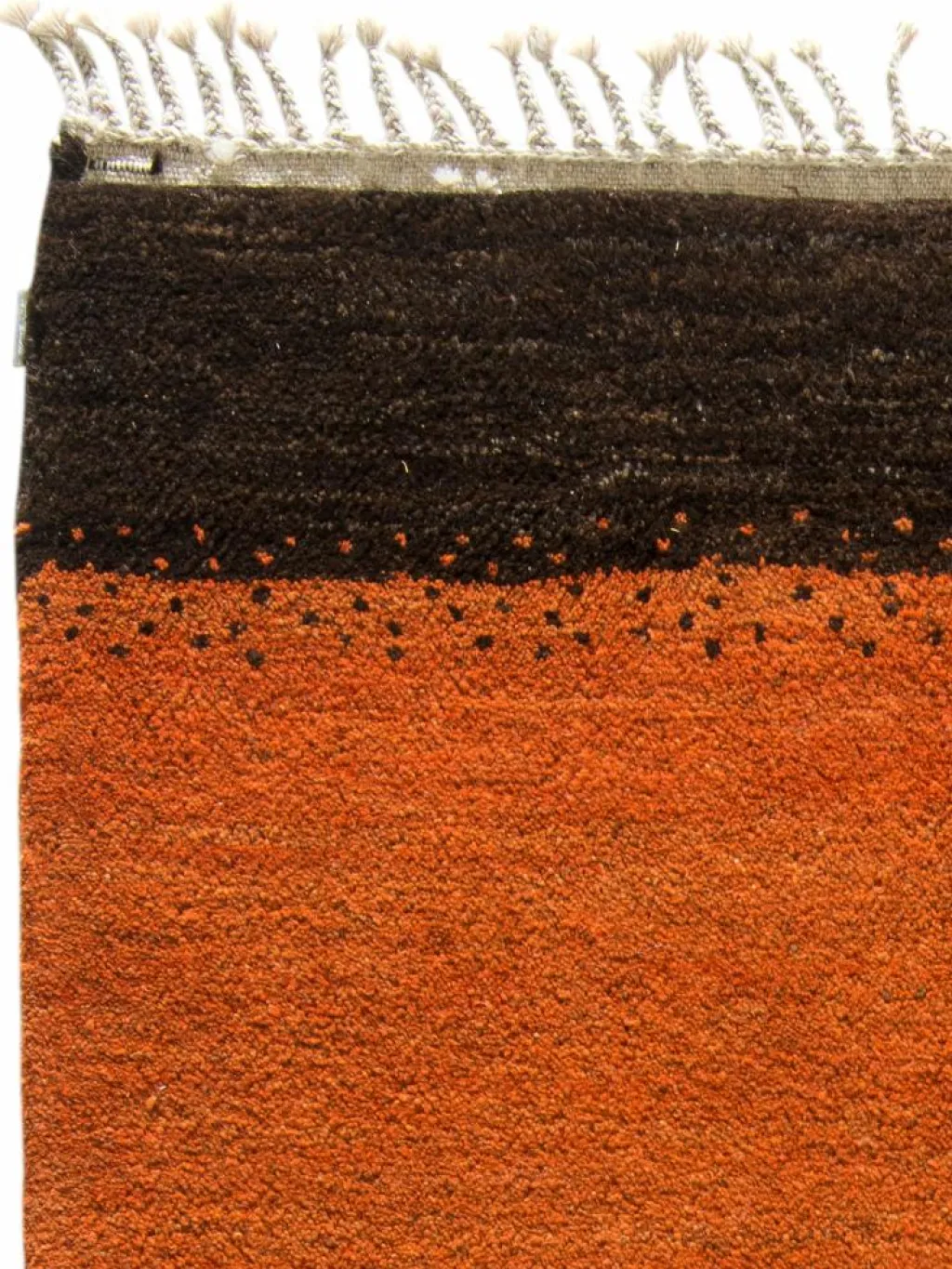 . Die Schur ist relativ hoch, der Griff fest. Die Muster sind meist schlicht oder eine Kombination mit traditionellen Mustern. Mustervorlagen gibt es nicht. Geknüpft werden alle Muster aus dem Kopf.| Gesamthöhe: | ca. 18 mm |