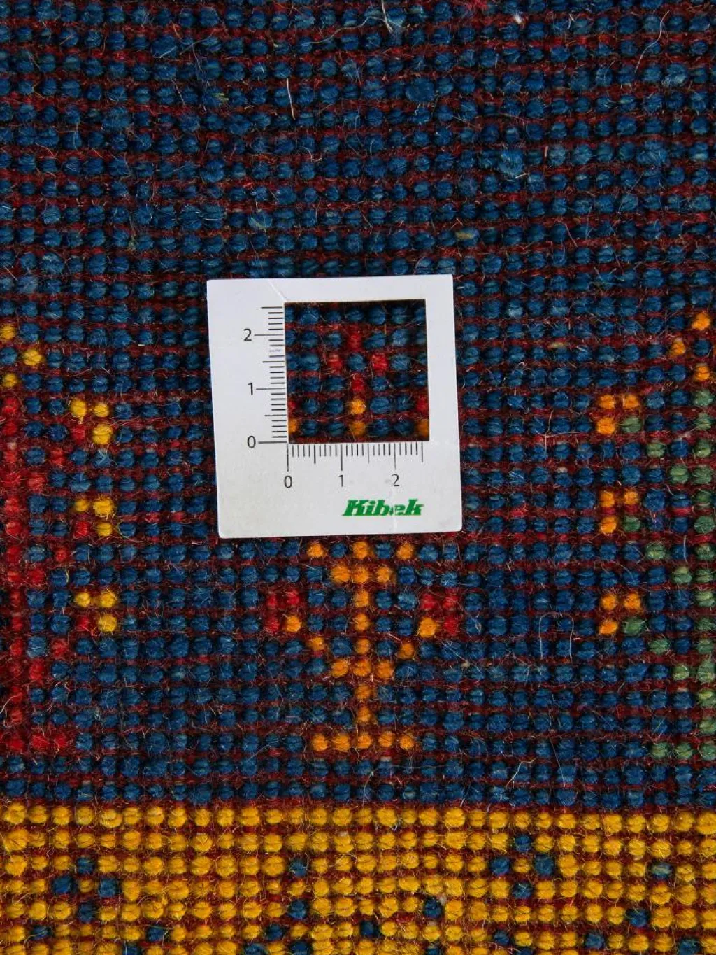 . Die Schur ist relativ hoch, der Griff fest. Die Muster sind meist schlicht oder eine Kombination mit traditionellen Mustern. Mustervorlagen gibt es nicht. Geknüpft werden alle Muster aus dem Kopf.| Gesamthöhe: | ca. 18 mm |