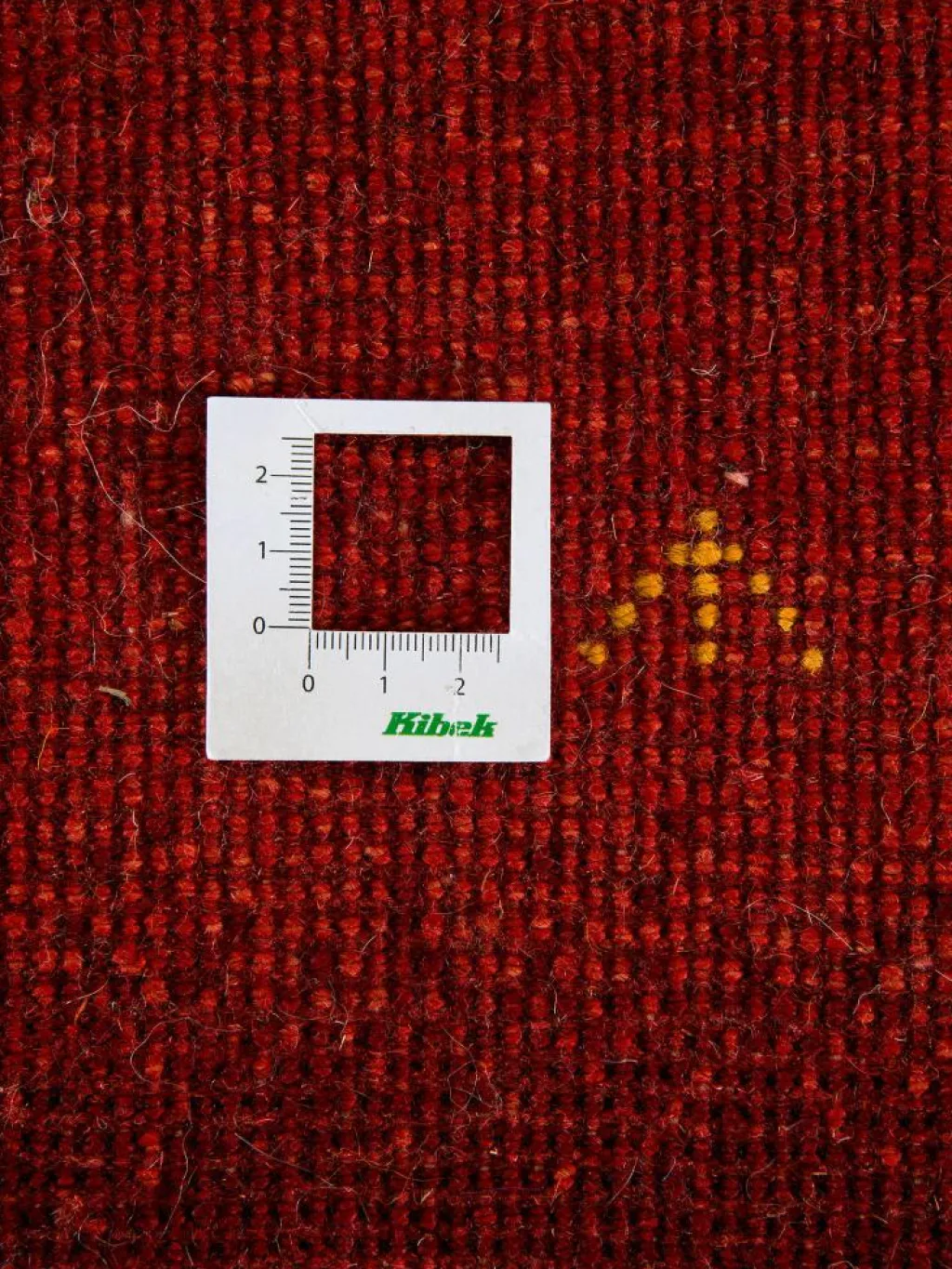 . Die Schur ist relativ hoch, der Griff fest. Die Muster sind meist schlicht oder eine Kombination mit traditionellen Mustern. Mustervorlagen gibt es nicht. Geknüpft werden alle Muster aus dem Kopf.| Gesamthöhe: | ca. 18 mm |