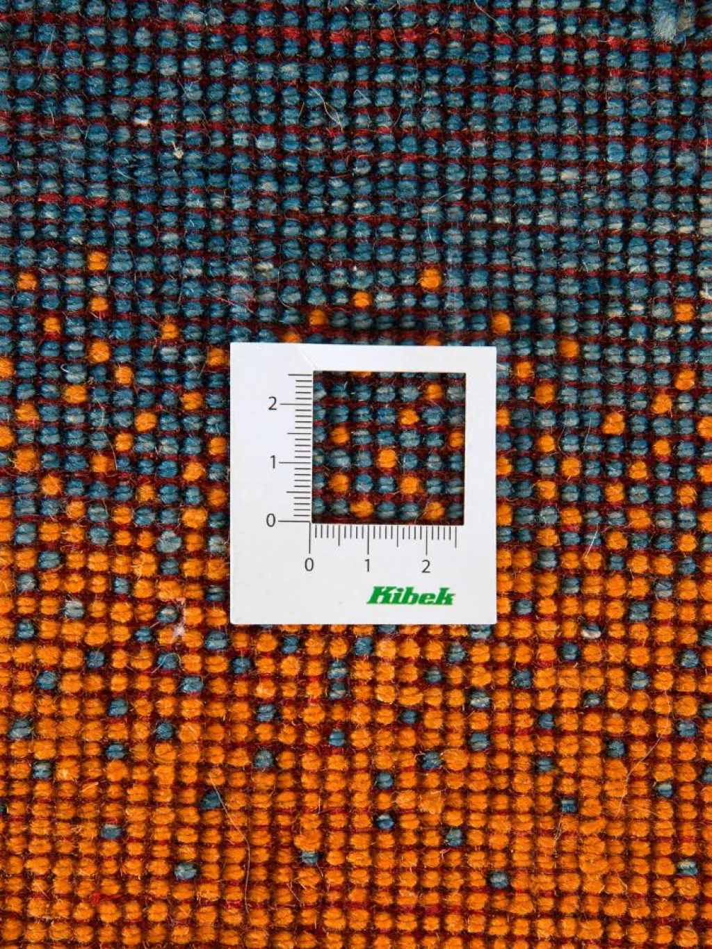 . Die Schur ist relativ hoch, der Griff fest. Die Muster sind meist schlicht oder eine Kombination mit traditionellen Mustern. Mustervorlagen gibt es nicht. Geknüpft werden alle Muster aus dem Kopf.| Gesamthöhe: | ca. 18 mm |