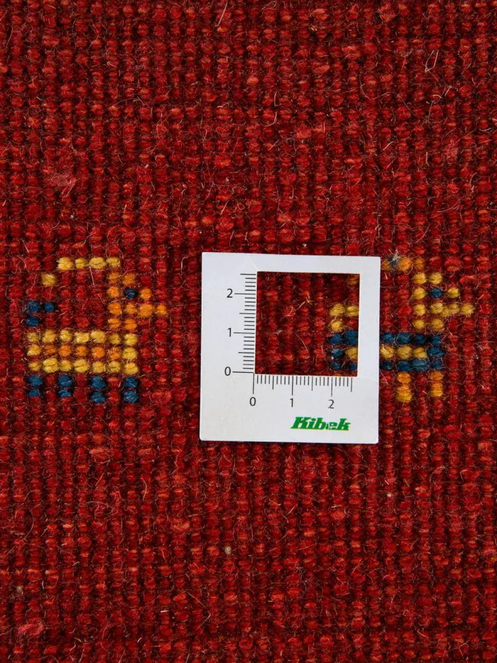 . Die Schur ist relativ hoch, der Griff fest. Die Muster sind meist schlicht oder eine Kombination mit traditionellen Mustern. Mustervorlagen gibt es nicht. Geknüpft werden alle Muster aus dem Kopf.| Gesamthöhe: | ca. 18 mm |