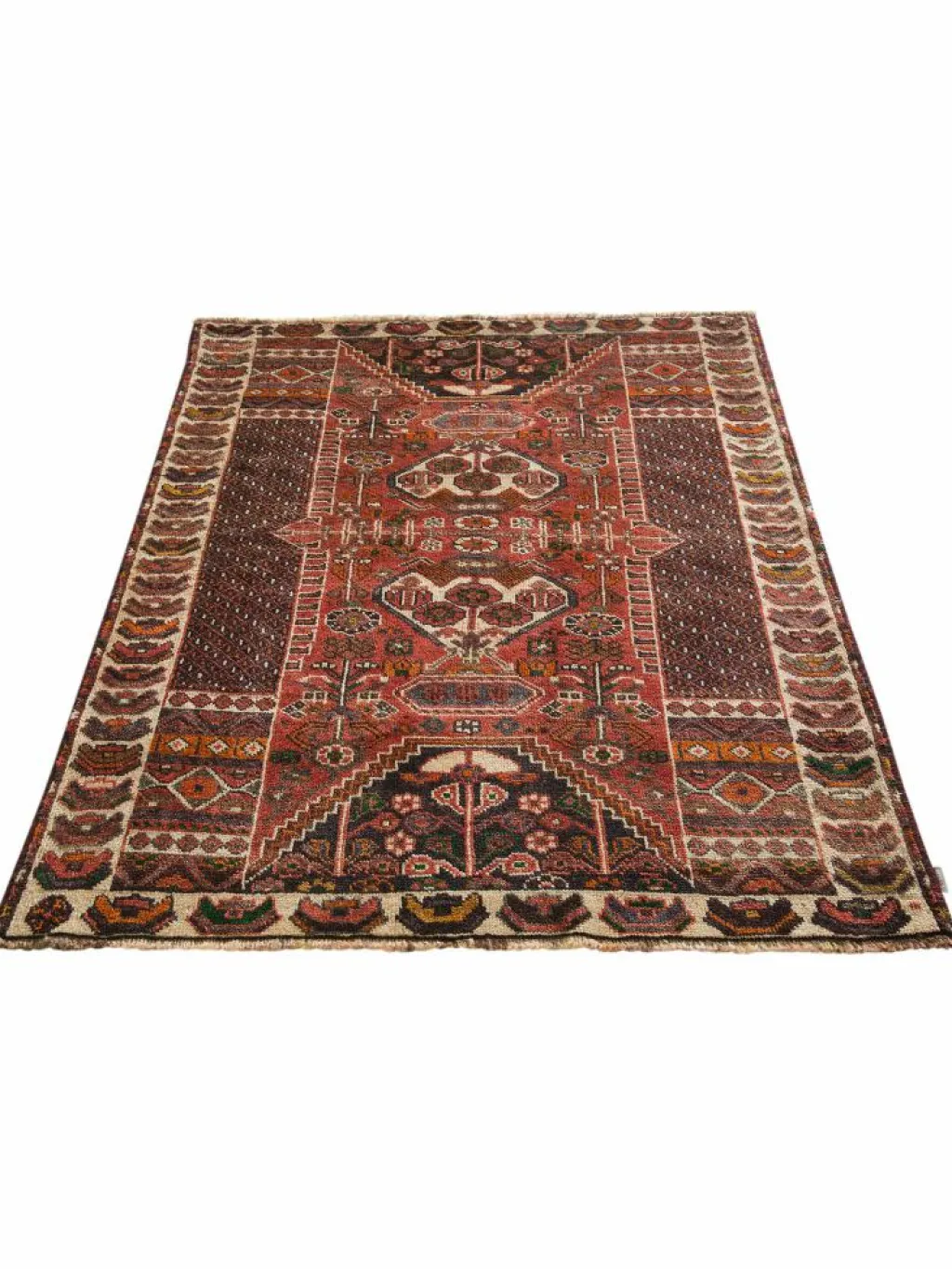 ist ein in warmen Tönen und traditionellen Mustern gehaltener Gebrauchsteppich. Typisch ist ein alsStangenmedaillon