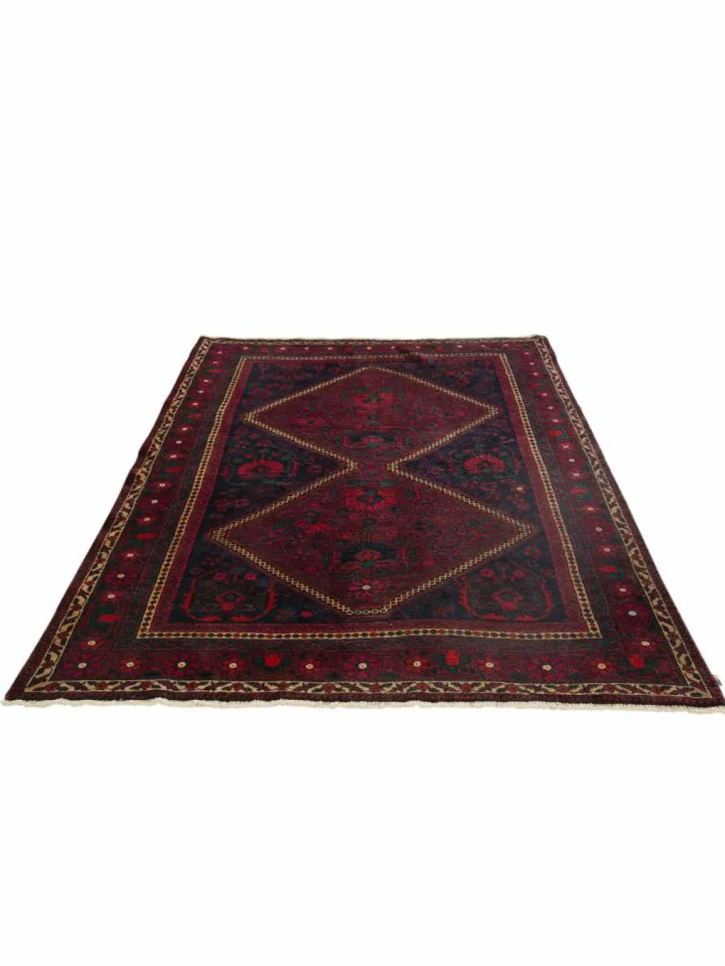 im Südosten Persiens geknüpft. Typisch für diese Teppiche ist das Sekaleh-Muster. Ein 3-köpfiges Muster, „“seh““=3 und „“kaleh““=Kopf, das auch als 5-köpfige Variante geknüpft wird. Ein zweites typisches Muster ist das Heshmati, benannt nach dem Namen seines Erfinders. DasGrundgewebe