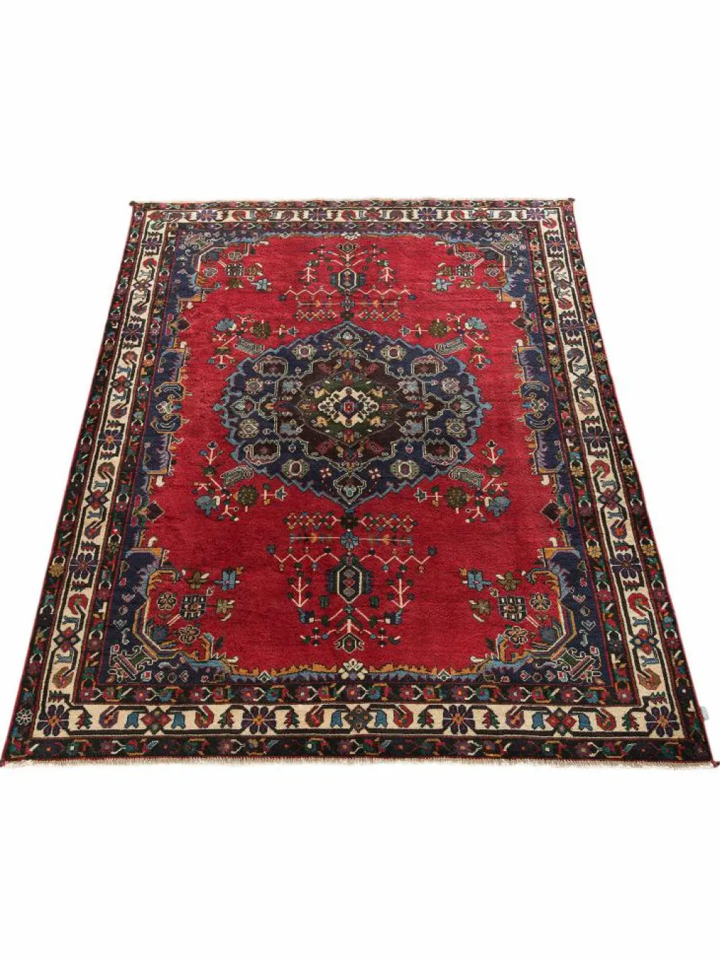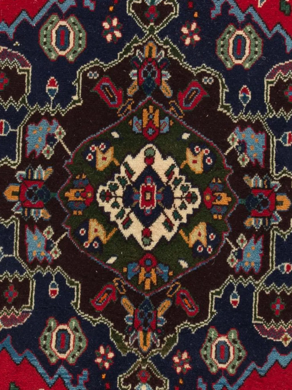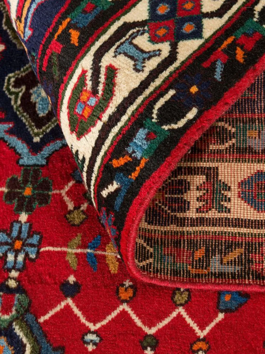 im Südosten Persiens geknüpft. Typisch für diese Teppiche ist das Sekaleh-Muster. Ein 3-köpfiges Muster, „“seh““=3 und „“kaleh““=Kopf, das auch als 5-köpfige Variante geknüpft wird. Ein zweites typisches Muster ist das Heshmati, benannt nach dem Namen seines Erfinders. DasGrundgewebe