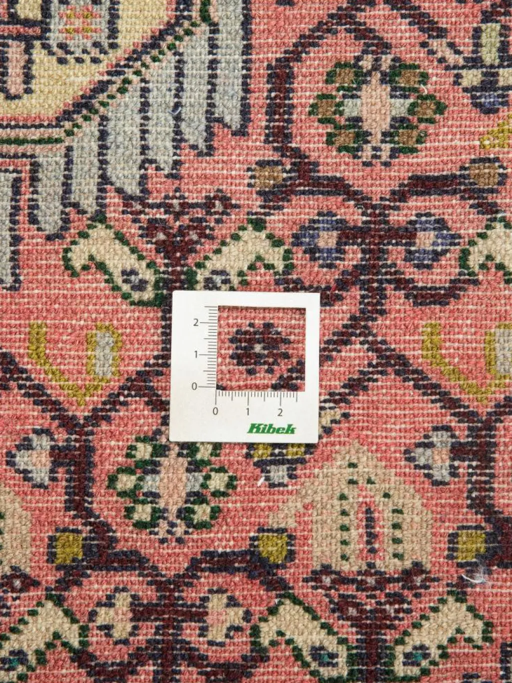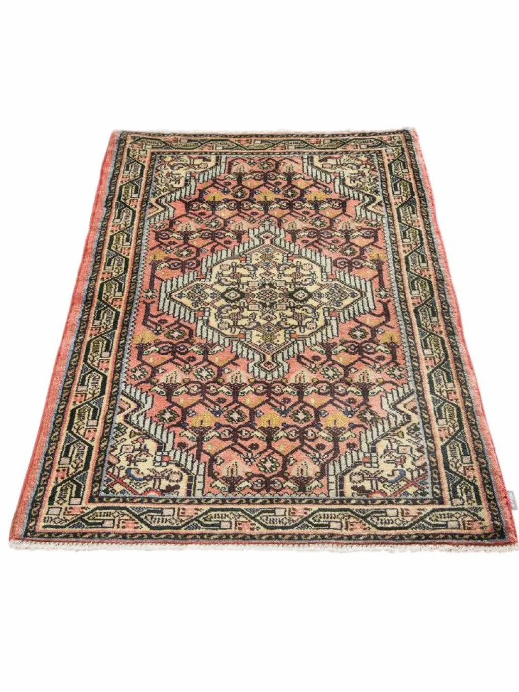 . Die Farben des Teppichs sind warm. Die Muster sind charakteristisch: Das Innenfeld ist mit einemMahi