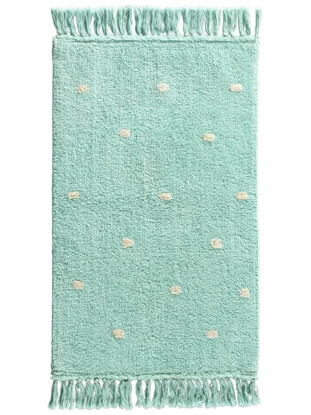 an den beiden kurzen Seiten und einer weichen Oberfläche, bringt sie zudem einen angenehmen und gemütlichen Touch mit sich. Die Matte besteht aus 100 % Baumwolle und ist für Fußbodenheizung geeignet. Erhältlich in zwei Größen und fünf Farben.| Eigenschaften: | für Fußbodenheizung geeignet |