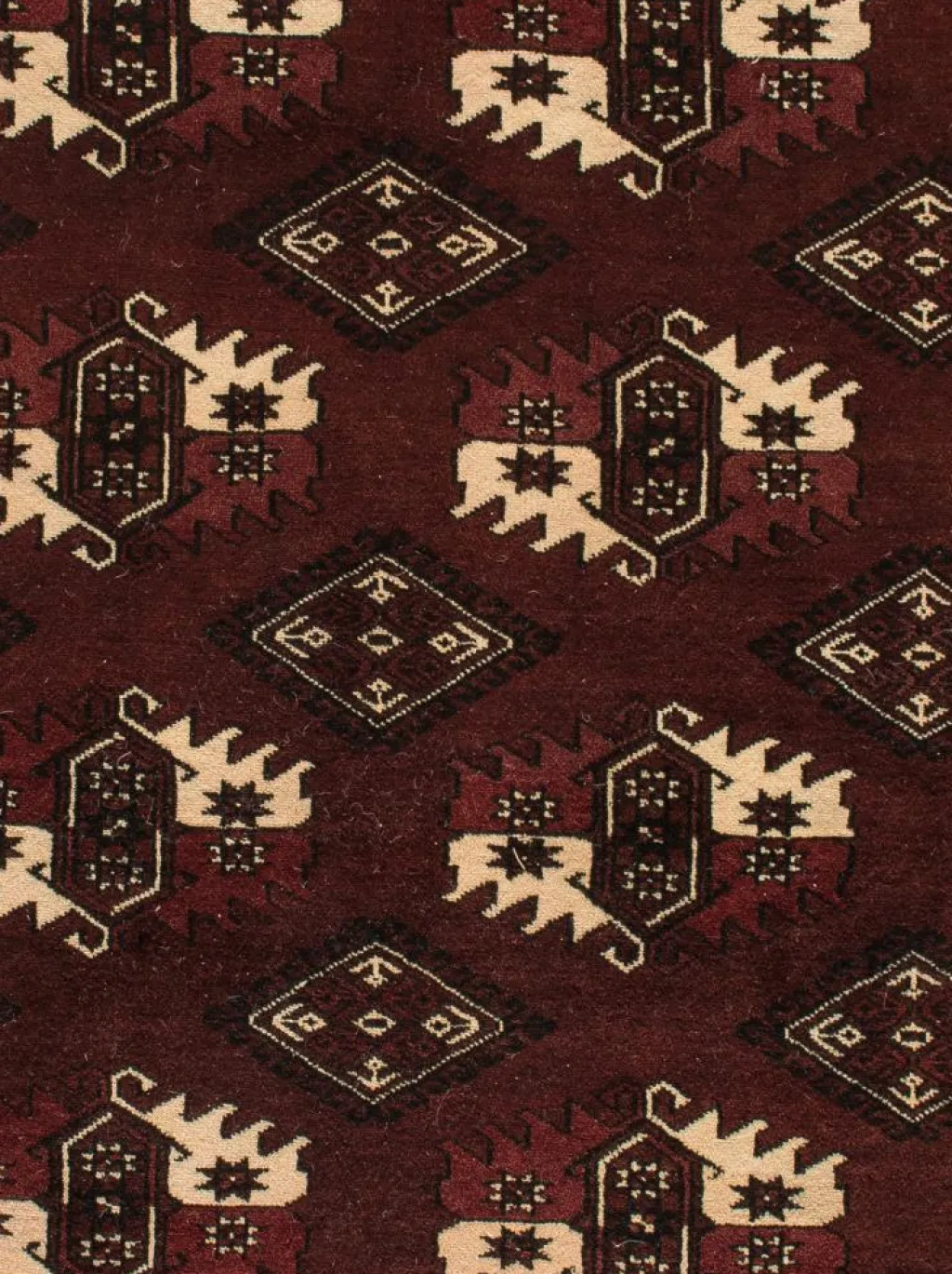 Musterdetail in turkmenischen Teppichen – Auch als Güll, Guel oder Gol bekannt.