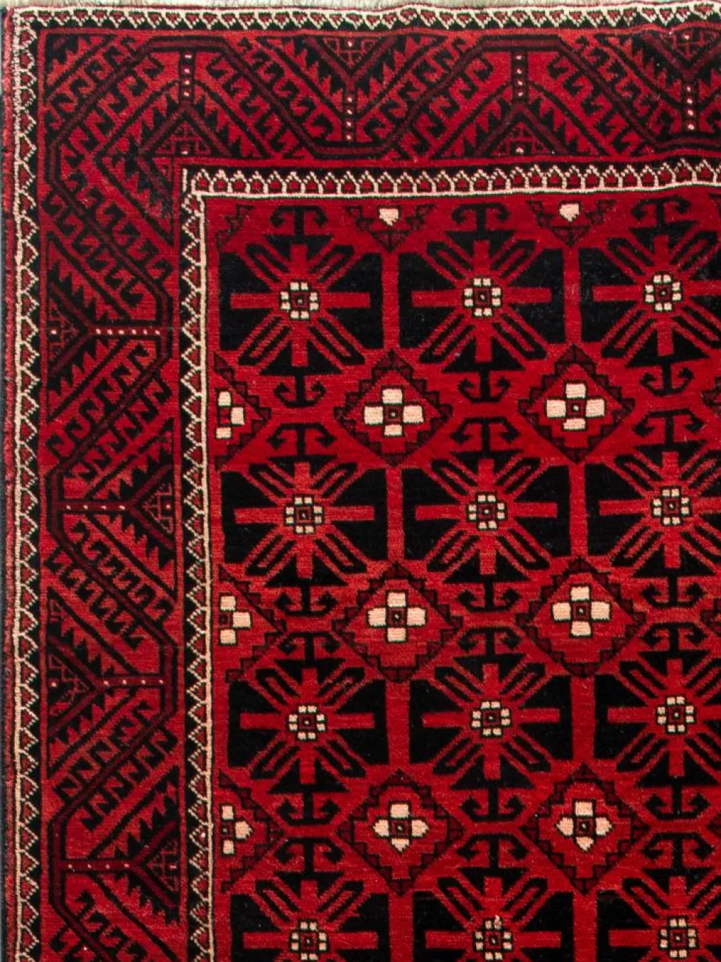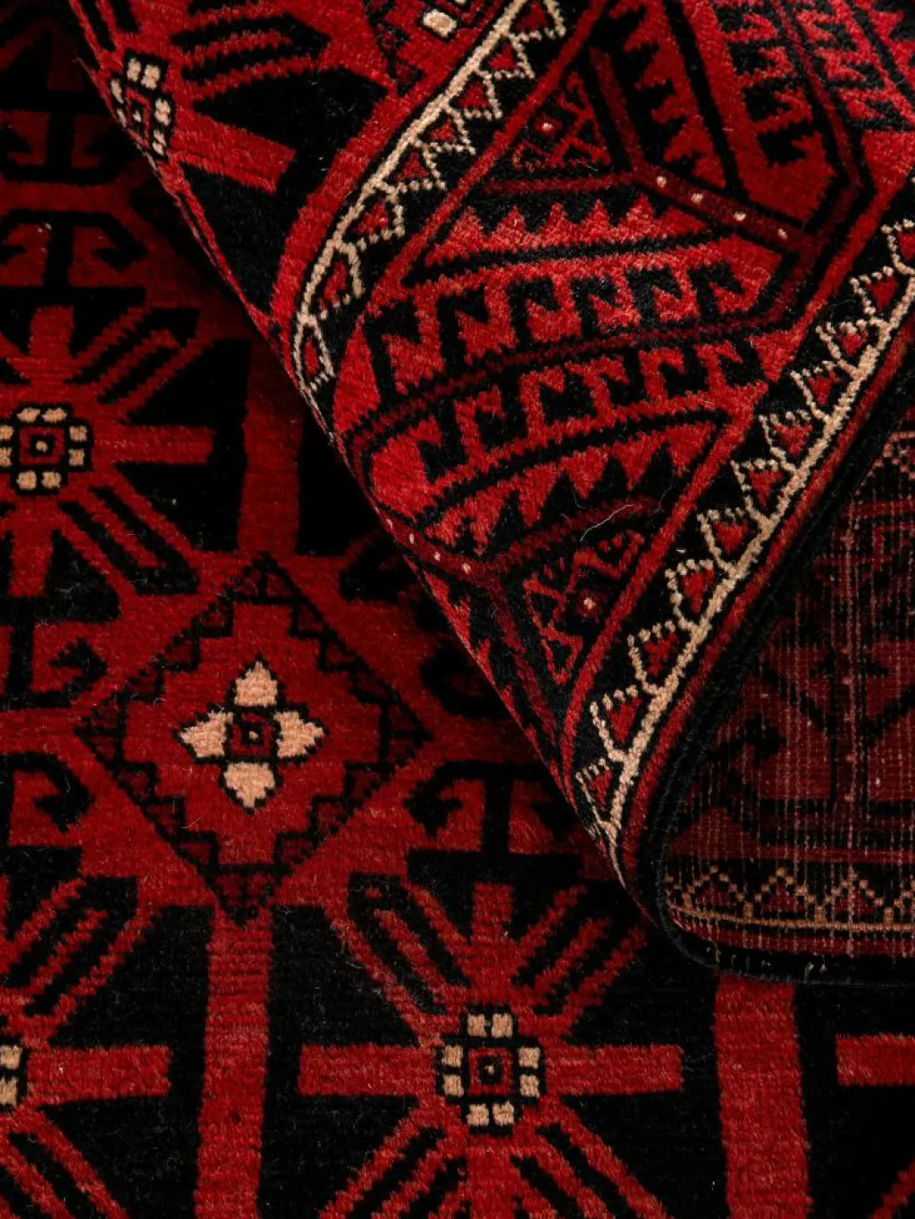 -Teppich hat seinen Namen vom Stamme der Baluchen, wird aber auch von anderen Stämmen geknüpft. Die einzelnen Stämme bleiben dabei ihren traditionellen Mustern und ihrer individuellen Farbgebung treu. Daher ist einBelutsch