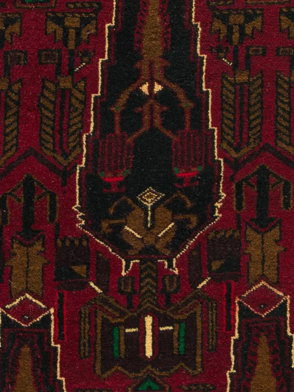 -Teppich hat seinen Namen vom Stamme der Baluchen, wird aber auch von anderen Stämmen geknüpft. Die einzelnen Stämme bleiben dabei ihren traditionellen Mustern und ihrer individuellen Farbgebung treu. Daher ist einBelutsch