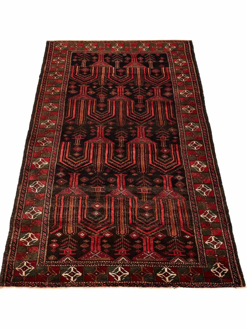 -Teppich hat seinen Namen vom Stamme der Baluchen, wird aber auch von anderen Stämmen geknüpft. Die einzelnen Stämme bleiben dabei ihren traditionellen Mustern und ihrer individuellen Farbgebung treu. Daher ist einBelutsch