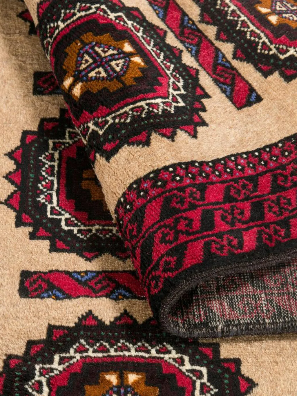hat seinen Namen vom Stamme der Baluchen, wird aber auch von anderen Stämmen geknüpft. Die einzelnen Stämme bleiben dabei ihren traditionellen Mustern und ihrer individuellen Farbgebung treu. Daher ist einBelutsch