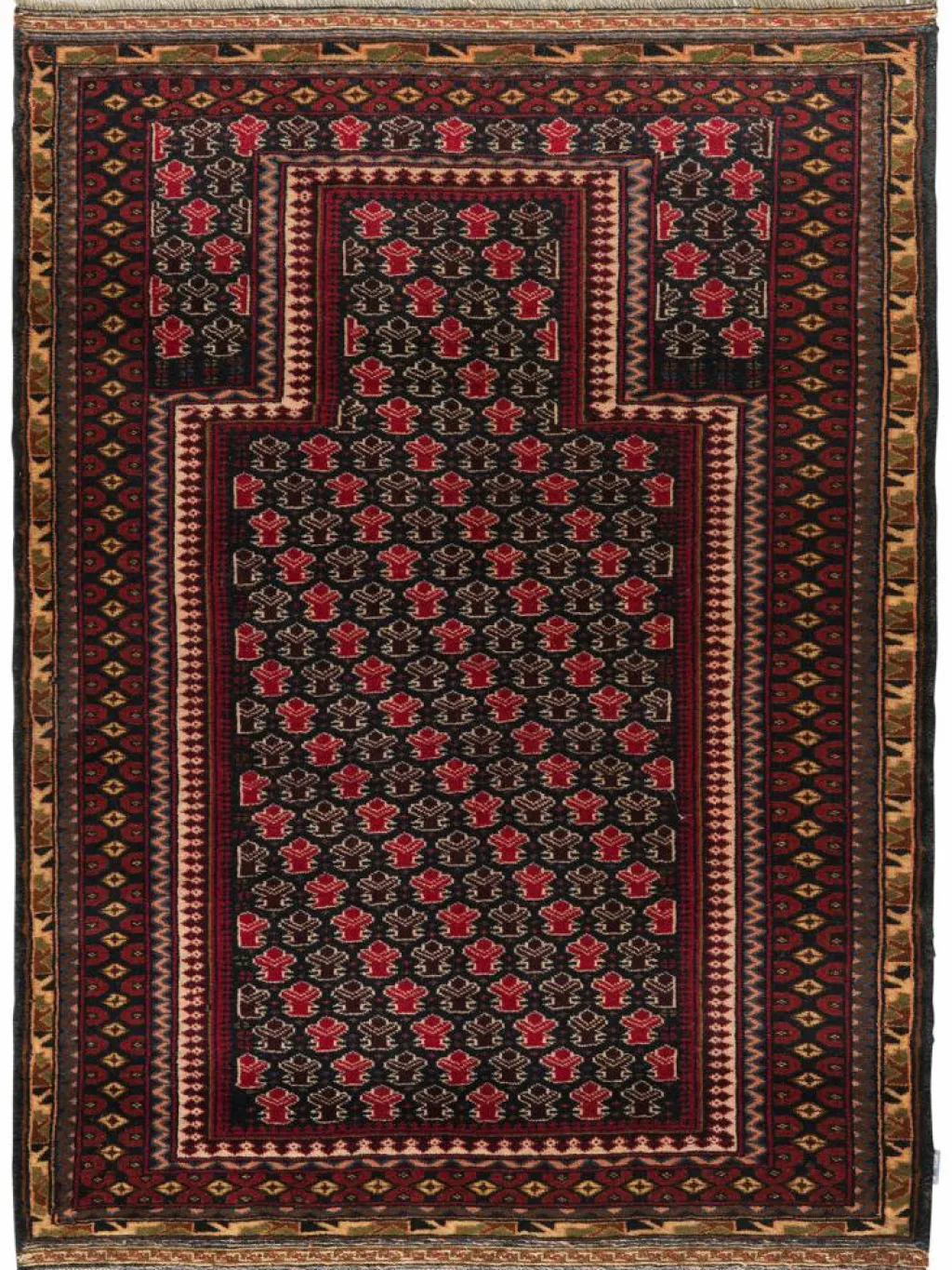 -Teppich hat seinen Namen vom Stamme der Baluchen, wird aber auch von anderen Stämmen geknüpft. Die einzelnen Stämme bleiben dabei ihren traditionellen Mustern und ihrer individuellen Farbgebung treu. Daher ist einBelutsch