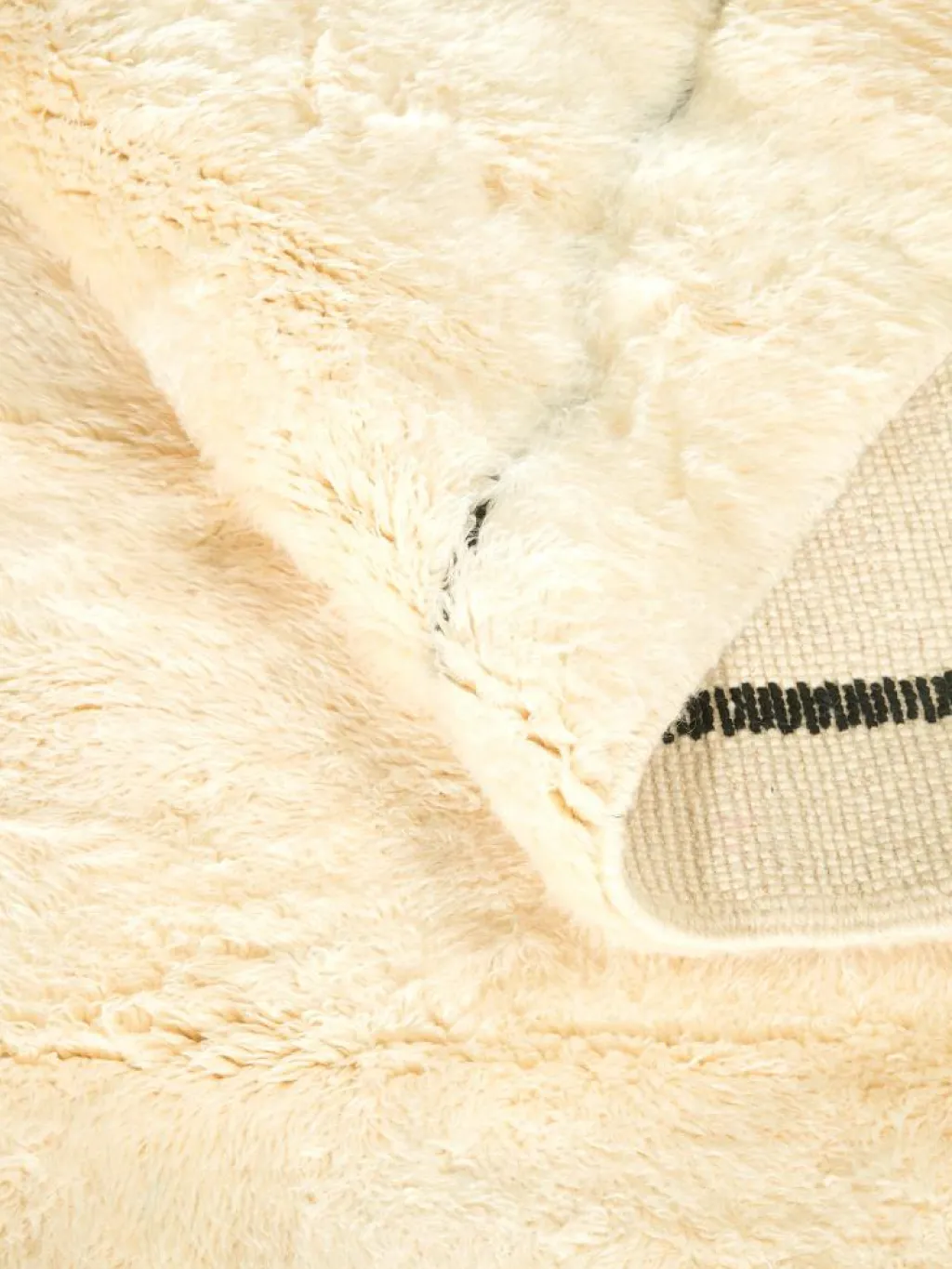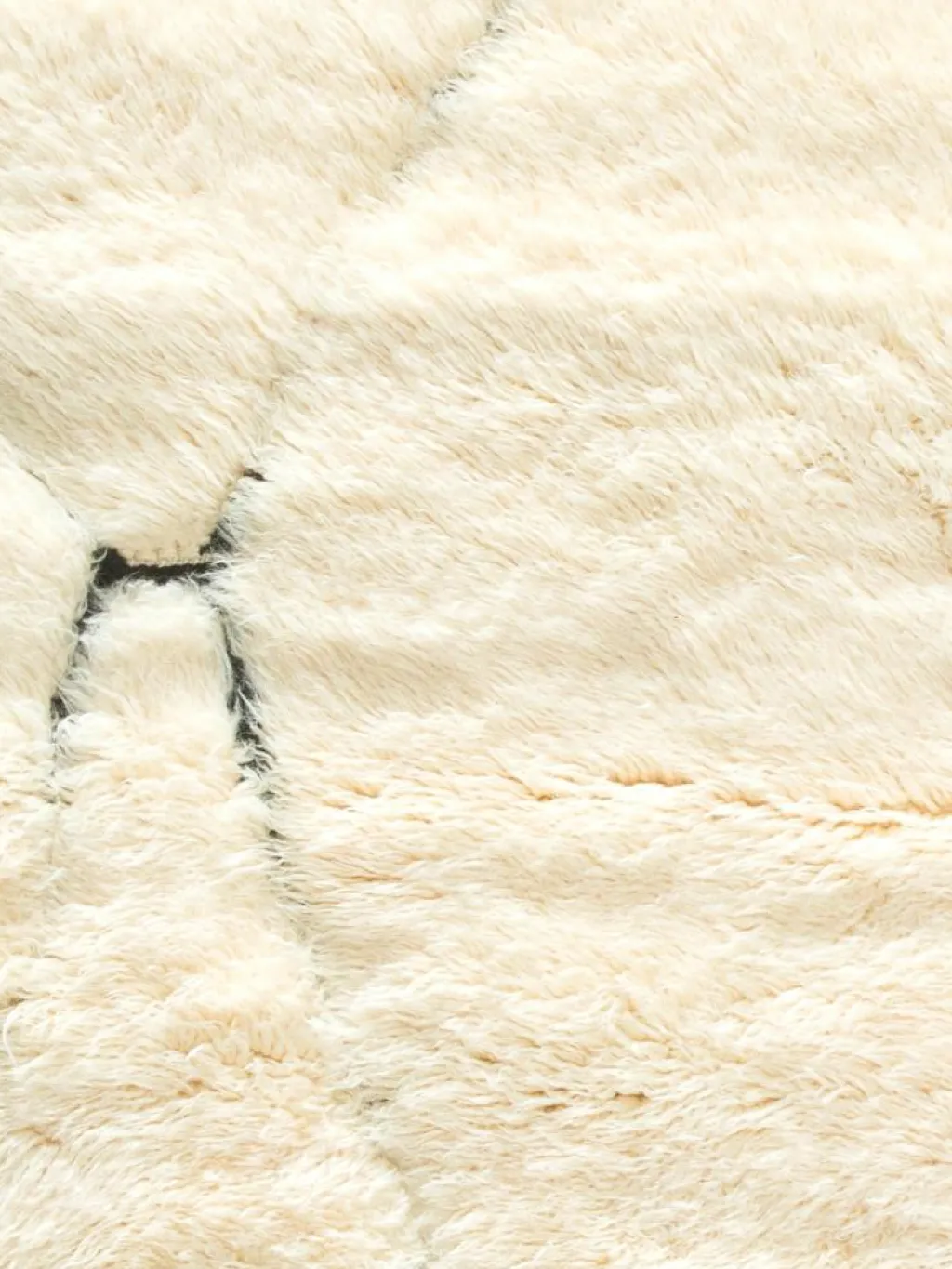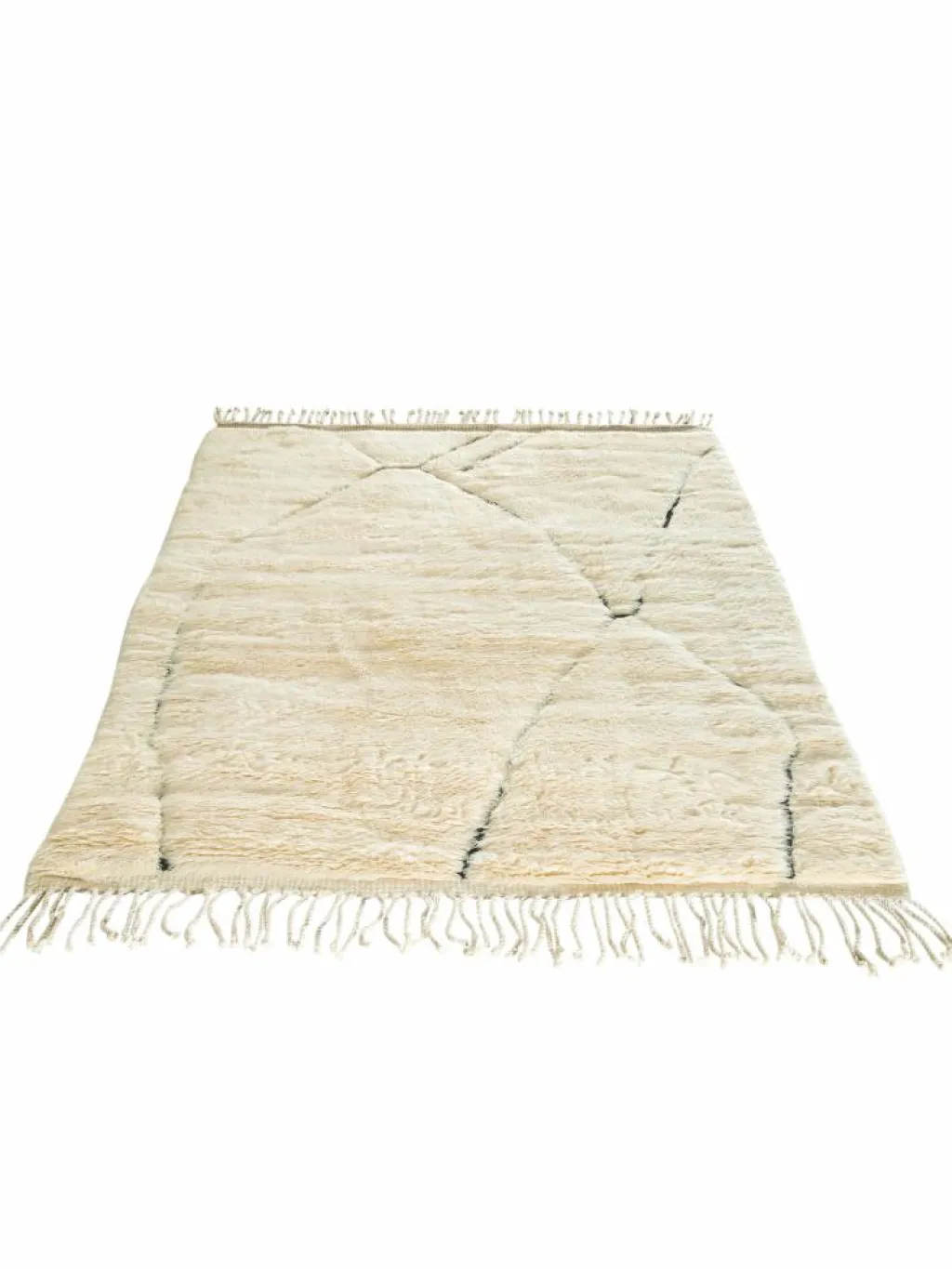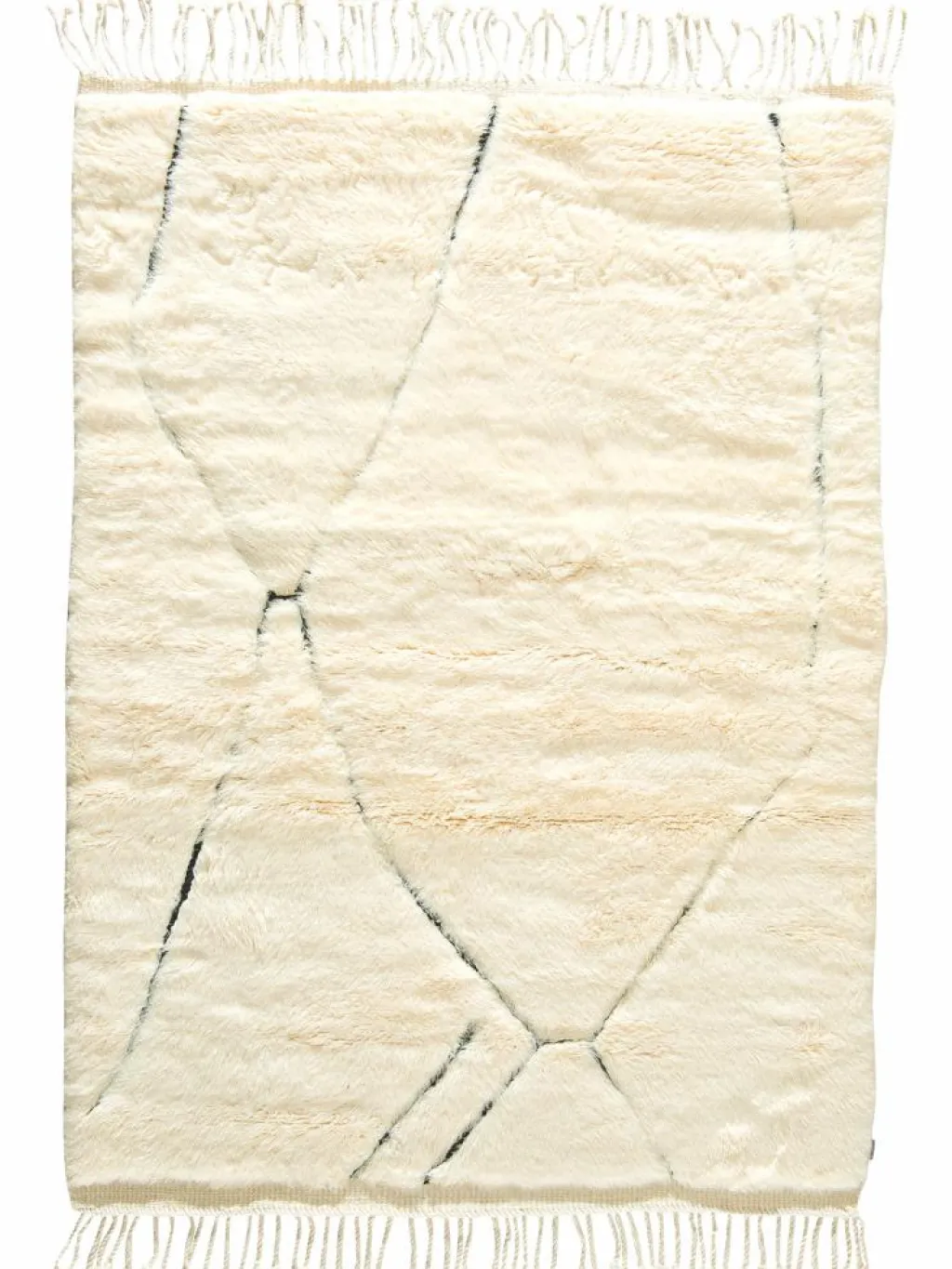 . Die Teppiche sind fast immer weißgrundig und zeichnen sich durch schwarze Zickzack-, Gitter- oder Rauten-Muster sowie einem wohnlich-zotteligen Flor aus. Kaum eine andere Teppichprovenienz passt mit ihren ursprünglichen nomadischen Designs besser in einen minimalistischen Wohnstil. Wie viele andere Nomadenteppiche auch, wurden dieBeni Ourain
