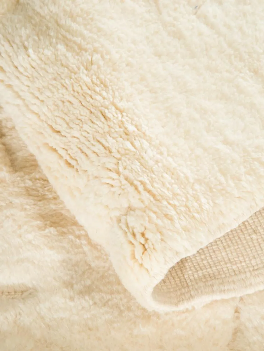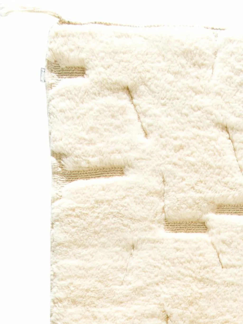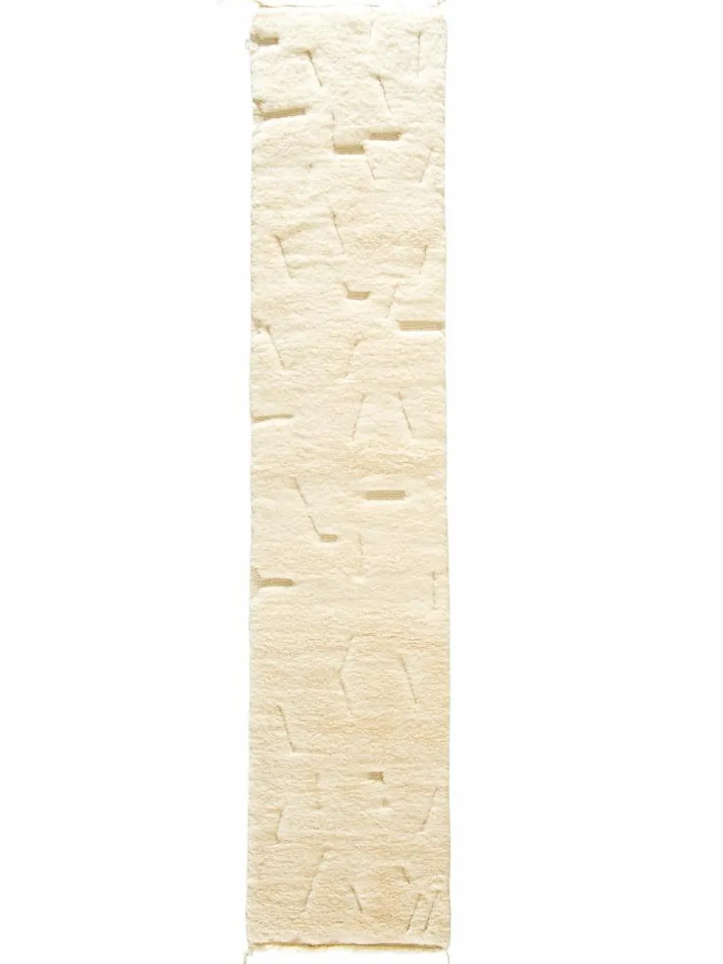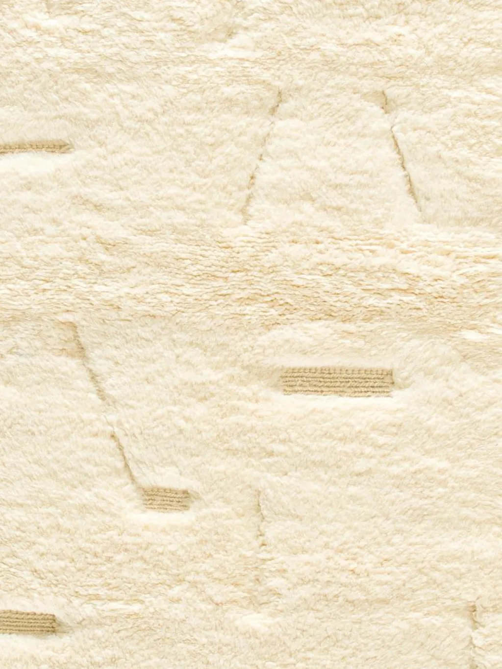 . Die Teppiche sind fast immer weißgrundig und zeichnen sich durch schwarze Zickzack-, Gitter- oder Rauten-Muster sowie einem wohnlich-zotteligen Flor aus. Kaum eine andere Teppichprovenienz passt mit ihren ursprünglichen nomadischen Designs besser in einen minimalistischen Wohnstil. Wie viele andere Nomadenteppiche auch, wurden dieBeni Ourain