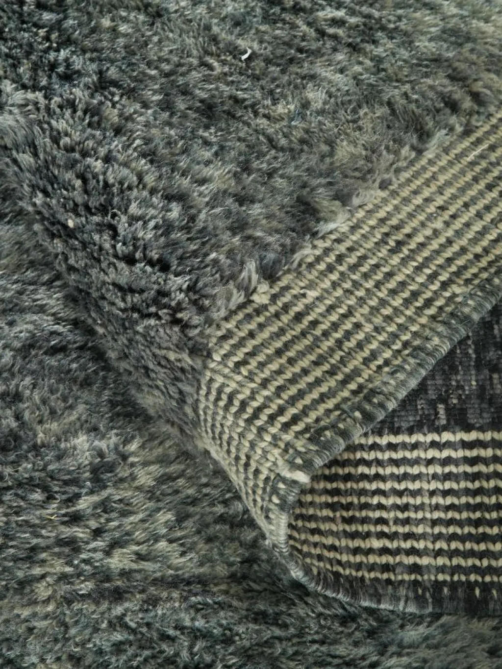 . Die Teppiche sind fast immer weißgrundig und zeichnen sich durch schwarze Zickzack-, Gitter- oder Rauten-Muster sowie einem wohnlich-zotteligen Flor aus. Kaum eine andere Teppichprovenienz passt mit ihren ursprünglichen nomadischen Designs besser in einen minimalistischen Wohnstil. Wie viele andere Nomadenteppiche auch, wurden dieBeni Ourain