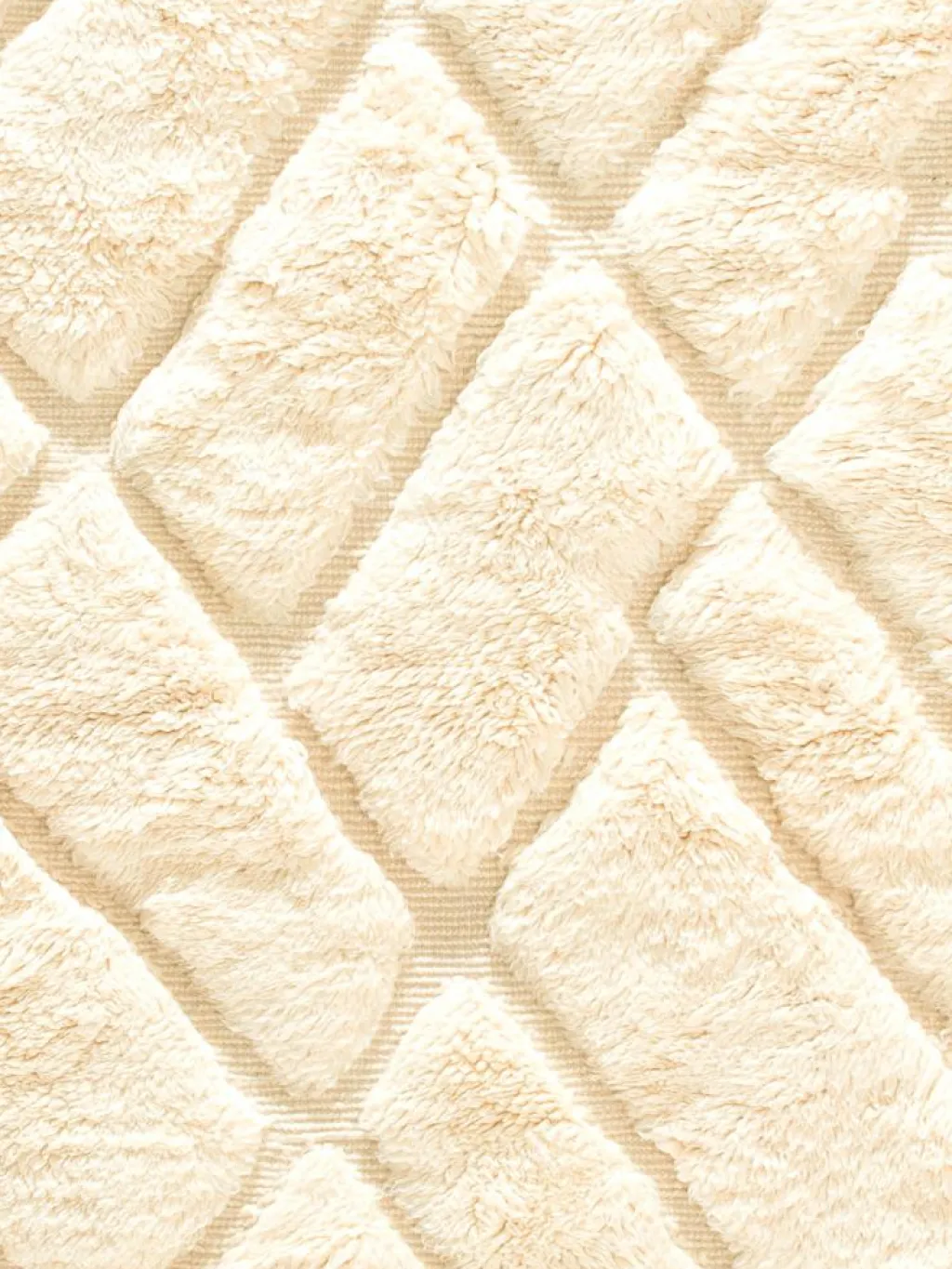 . Die Teppiche sind fast immer weißgrundig und zeichnen sich durch schwarze Zickzack-, Gitter- oder Rauten-Muster sowie einem wohnlich-zotteligen Flor aus. Kaum eine andere Teppichprovenienz passt mit ihren ursprünglichen nomadischen Designs besser in einen minimalistischen Wohnstil. Wie viele andere Nomadenteppiche auch, wurden dieBeni Ourain