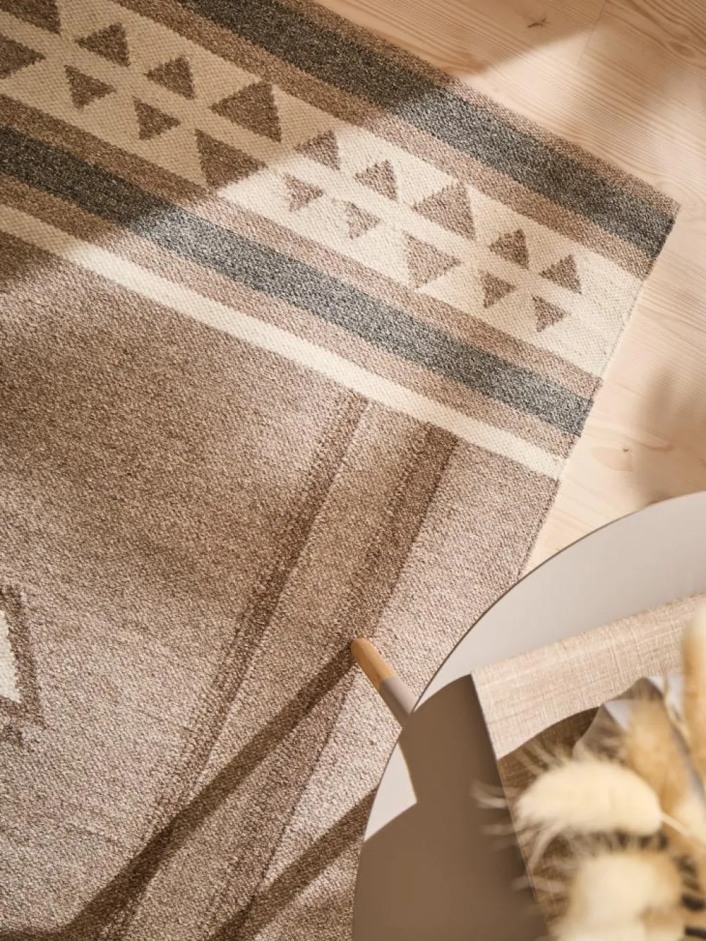 , Polyester und Baumwolle bietet Berga nicht nur ein angenehmes Laufgefühl, sondern auch eine strapazierfähige und pflegeleichte Oberfläche. Seine ethnischen Muster in harmonischen Farben verleihen jedem Raum Wärme, während er gleichzeitig für eine gemütliche Atmosphäre sorgt. Teppiche mit Schurwoll-Anteil können einen typischen Eigengeruch haben. Bei regelmäßigem Lüften verfliegt dieser Geruch nach einigen Tagen.| Eigenschaften: | für Fußbodenheizung geeignet |