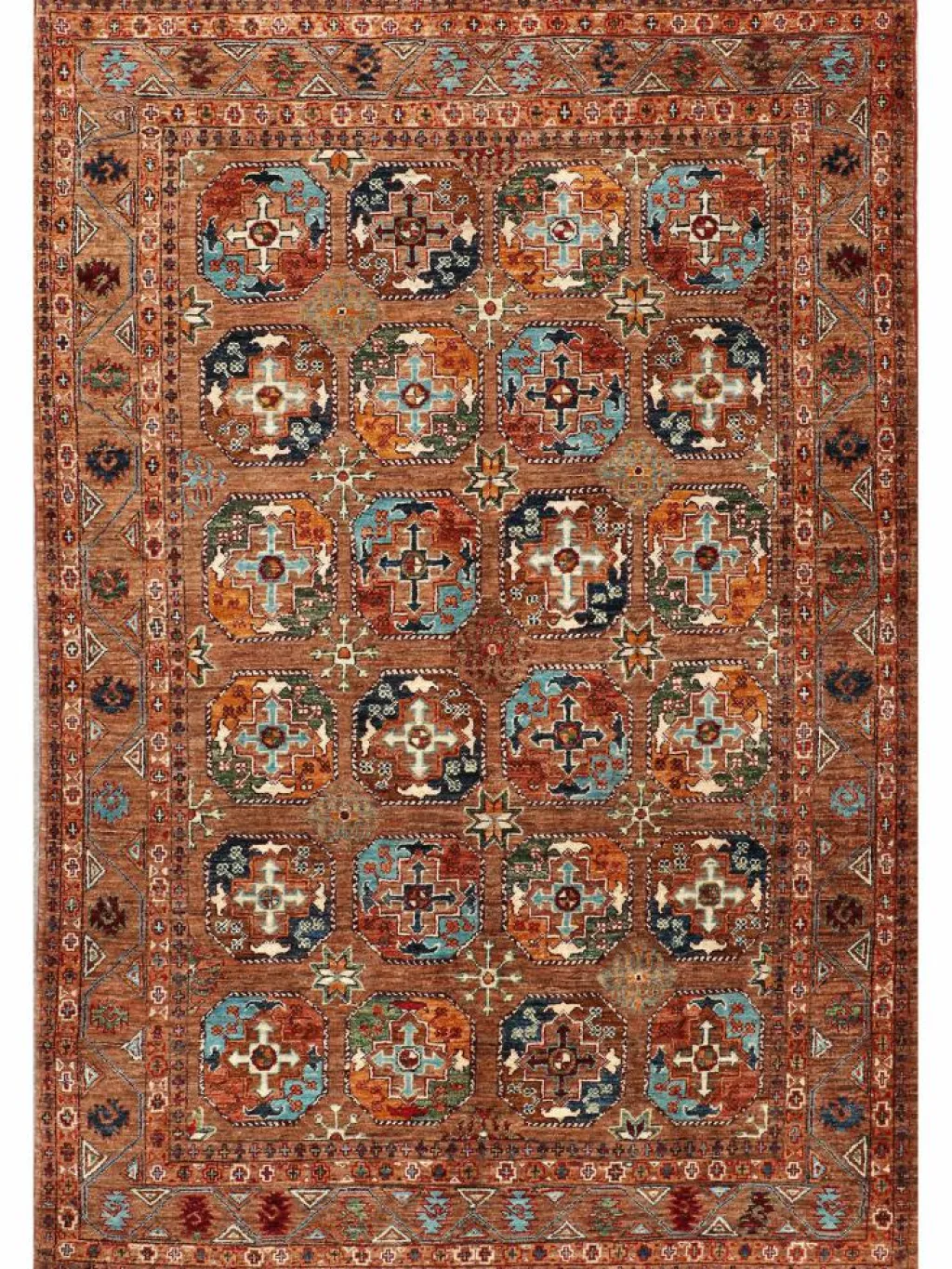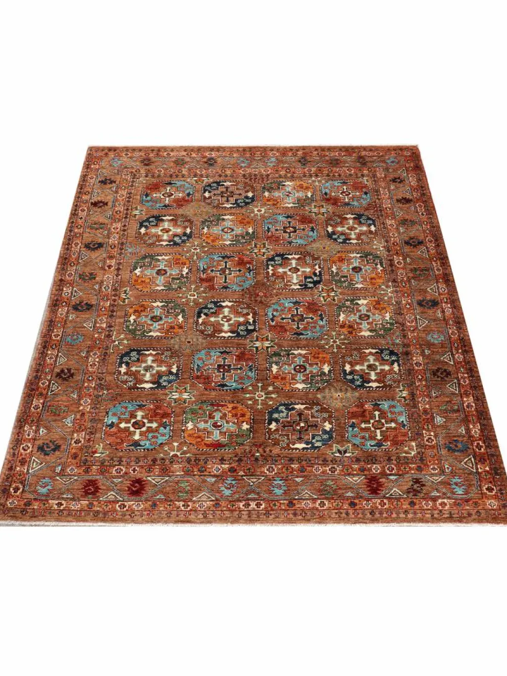zeigt im Muster das klassische turkmenische Bucharadesign. Als Vorbild dienen dabei die jeweilige Stammeszeichen (Gül