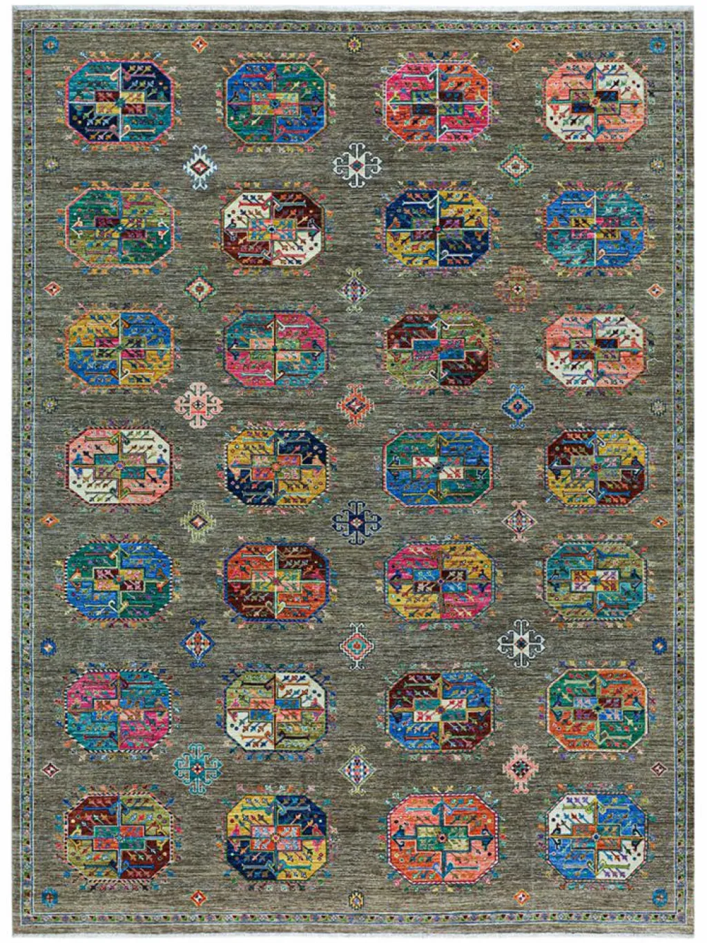 zeigt im Muster das klassische turkmenische Bucharadesign. Als Vorbild dienen dabei die jeweilige Stammeszeichen (Gül