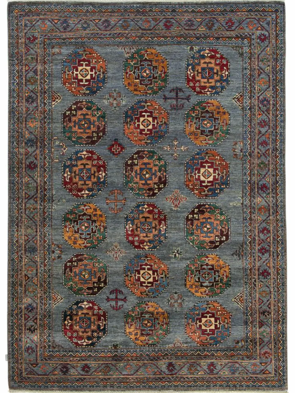 zeigt im Muster das klassische turkmenische Bucharadesign. Als Vorbild dienen dabei die jeweilige Stammeszeichen (Gül