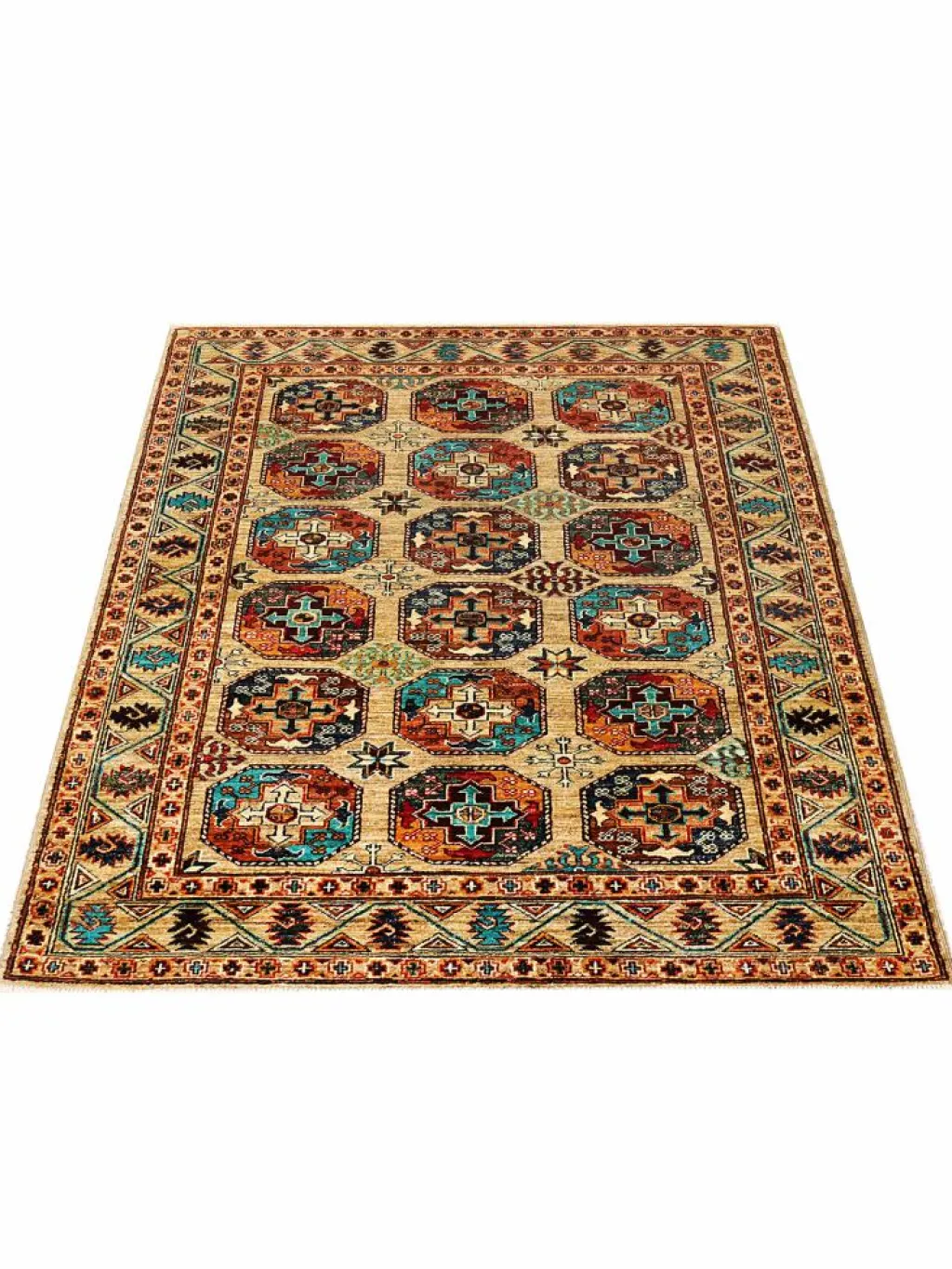 zeigt im Muster das klassische turkmenische Bucharadesign. Als Vorbild dienen dabei die jeweilige Stammeszeichen (Gül
