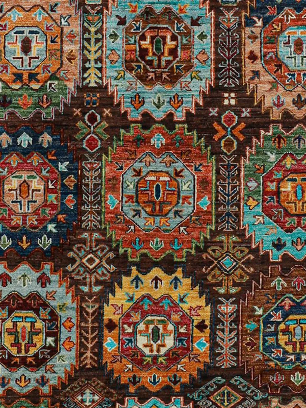 zeigt im Muster das klassische turkmenische Bucharadesign. Als Vorbild dienen dabei die jeweilige Stammeszeichen (Gül