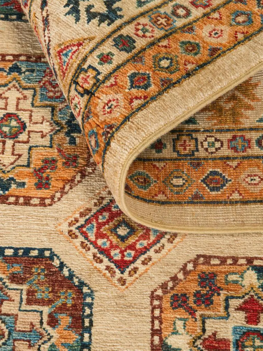 . Sie ist sehr langstapelig, wenig gekräuselt, lanolinreich und sehr dick. Ihre hohe Spannkraft sorgt dafür, dass sich auch durch intensive Benutzung ein nieder gedrückter Teppichflor wieder aufrichtet. Die BezeichnungGhazni