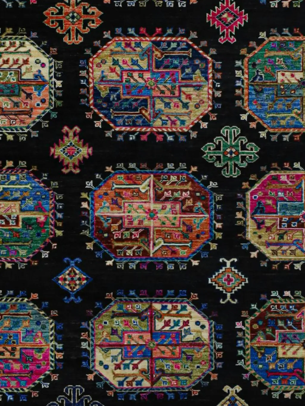 zeigt im Muster das klassische turkmenische Bucharadesign. Als Vorbild dienen dabei die jeweilige Stammeszeichen (Gül