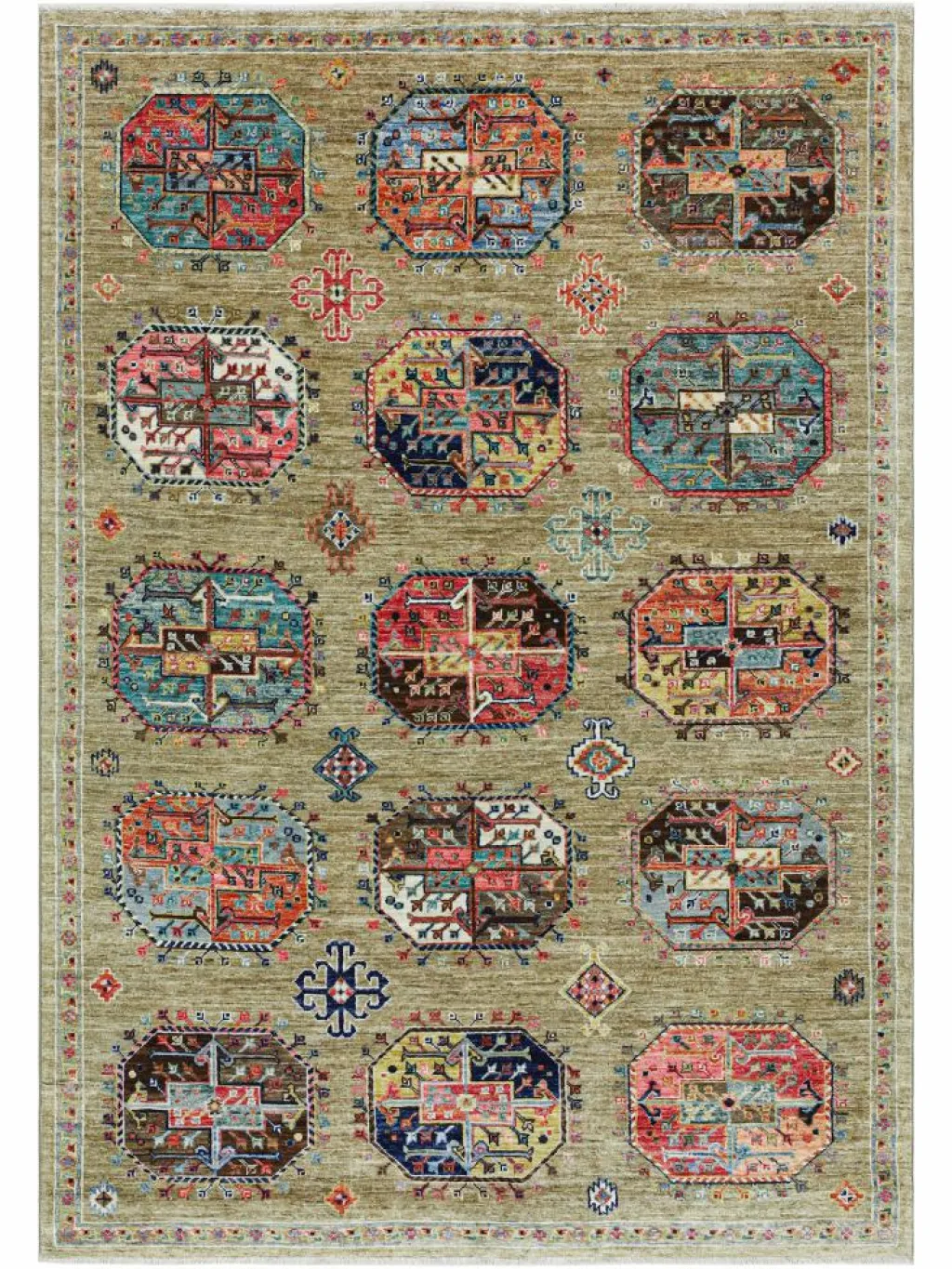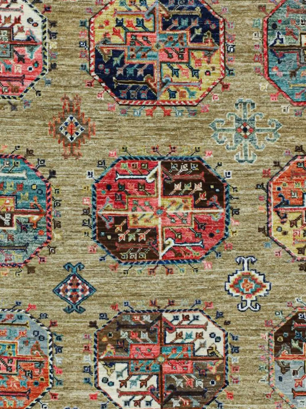 zeigt im Muster das klassische turkmenische Bucharadesign. Als Vorbild dienen dabei die jeweilige Stammeszeichen (Gül
