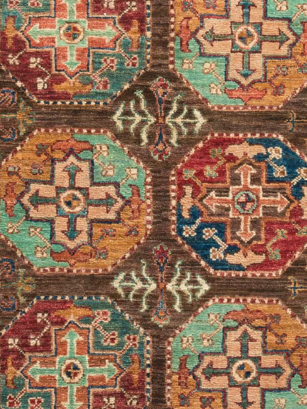 zeigt im Muster das klassische turkmenische Bucharadesign. Als Vorbild dienen dabei die jeweilige Stammeszeichen (Gül