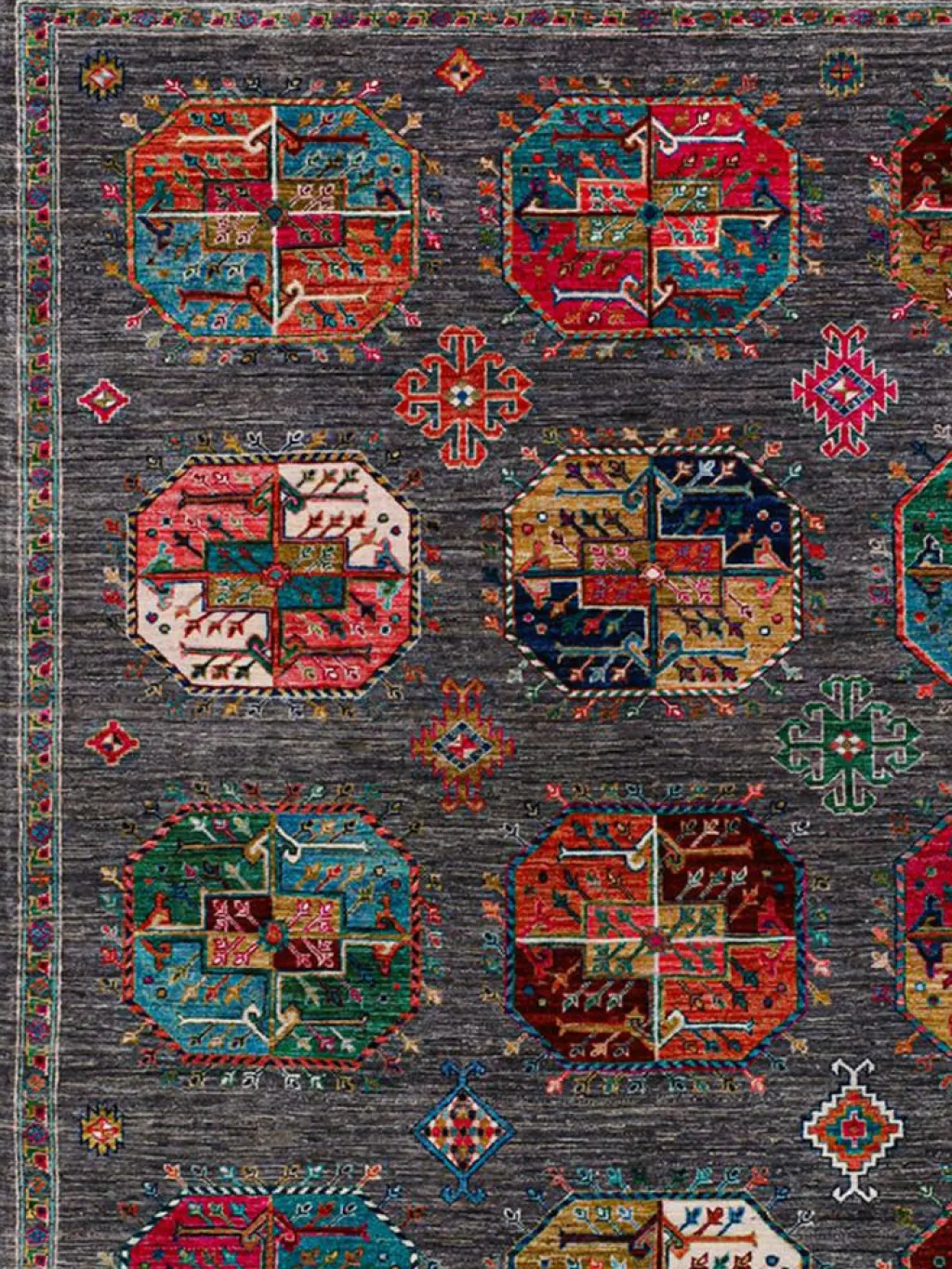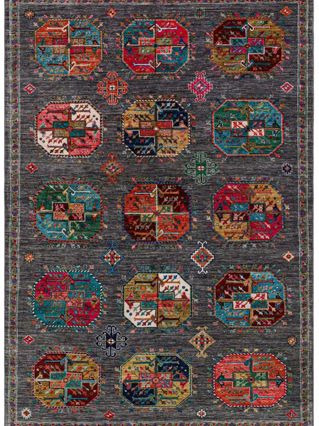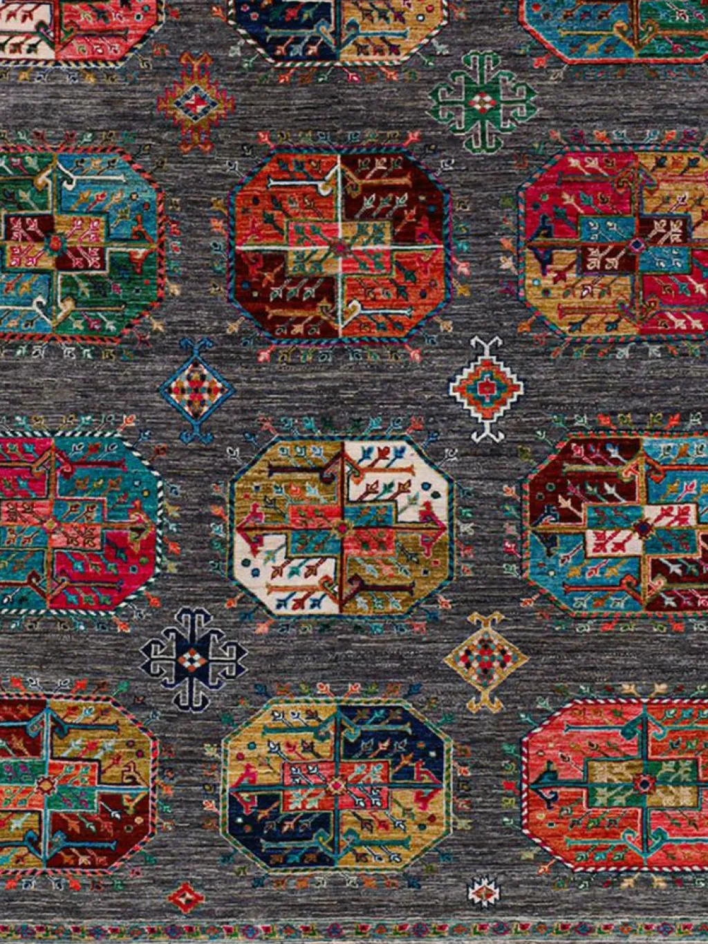 zeigt im Muster das klassische turkmenische Bucharadesign. Als Vorbild dienen dabei die jeweilige Stammeszeichen (Gül