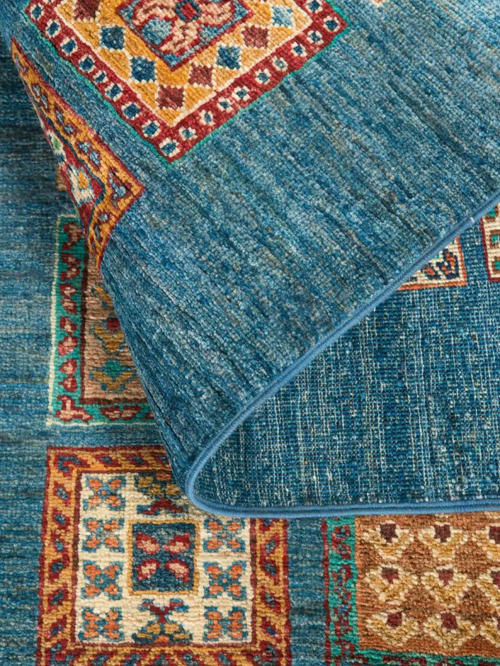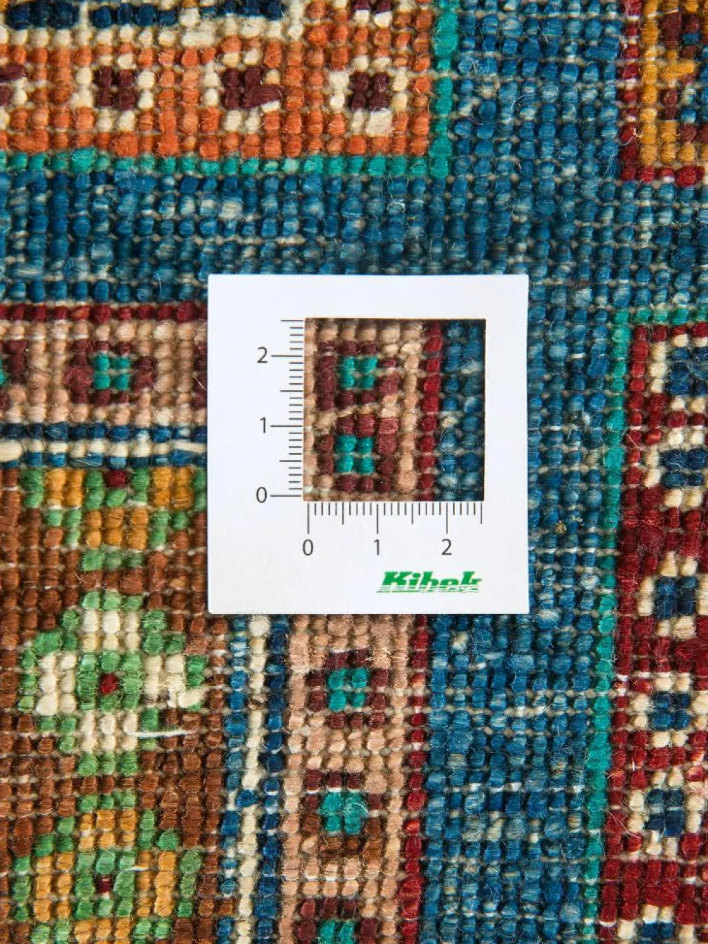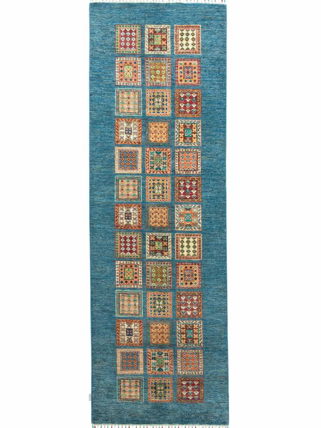 erinnert an einen üppig bewachsenen Garten mit geometrisch gegliederten, einzeln eingefassten Beeten zwischen denen die Bewässerungsgräben verlaufen. Durch den flachen und festen Flor ist der Teppich unempfindlich gegenüber den Belastungen des Alltags.- Das Besondere an diesemOrientteppich