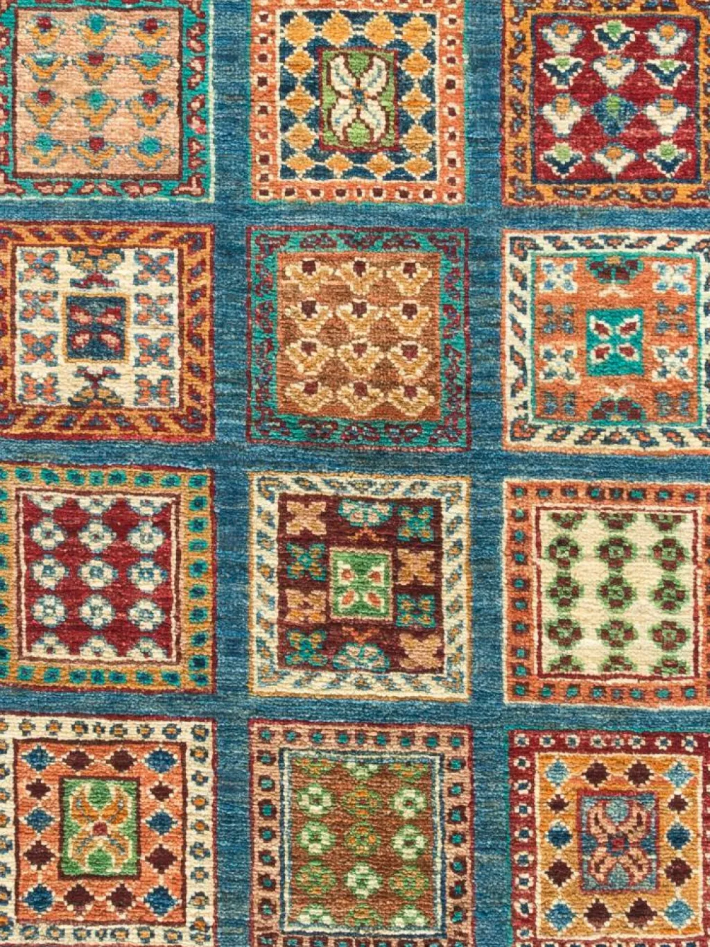 zeigt eine wunderschöne, farbenfrohe Interpretation des traditionellen, persischen Feldermusters. Das persischeFeldermuster