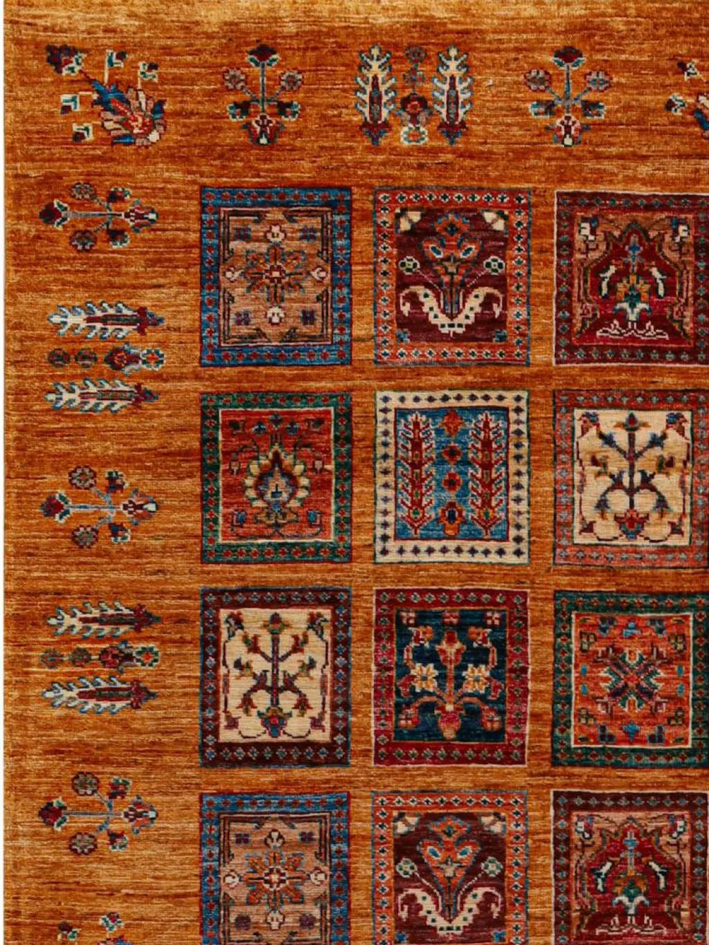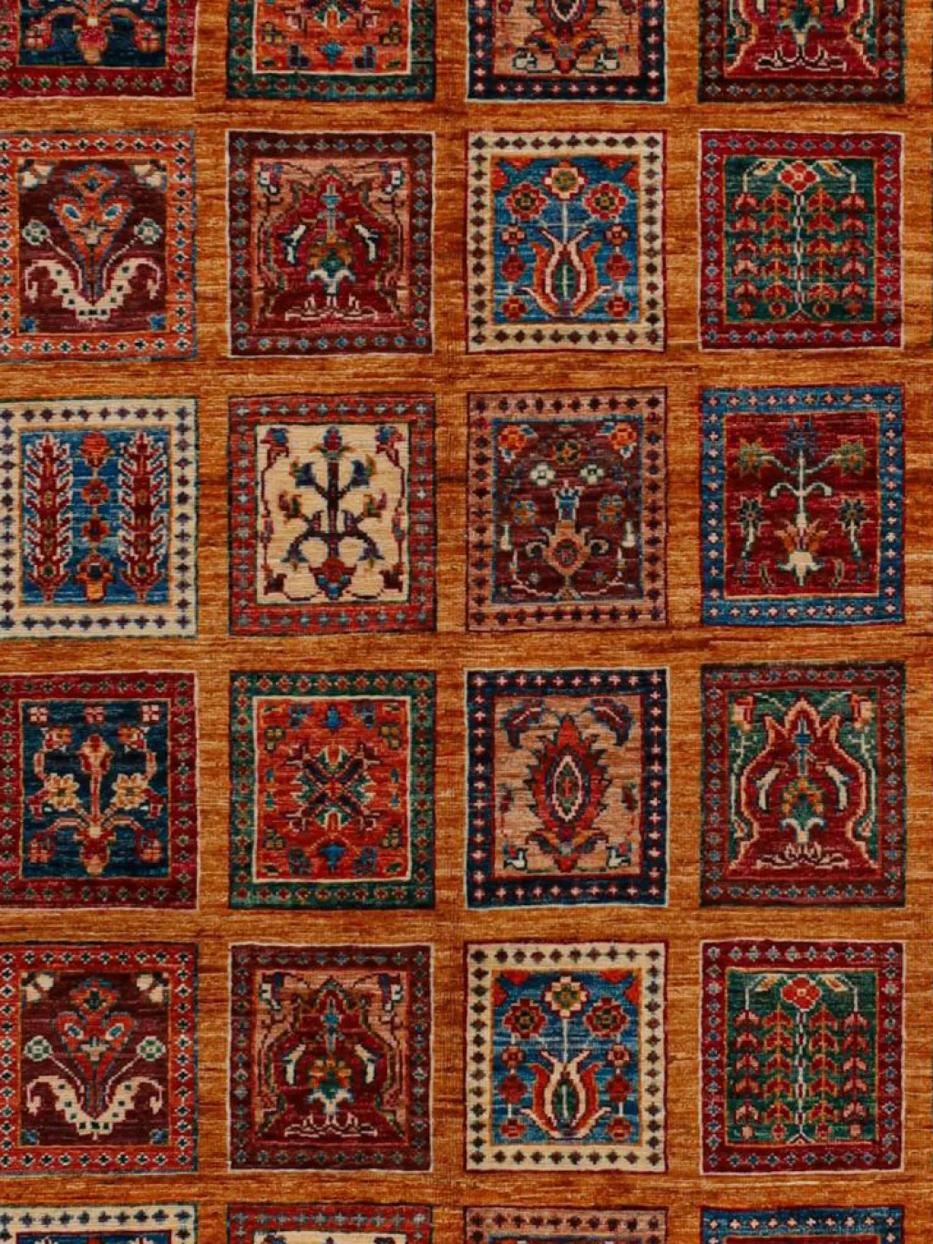 zeigt eine wunderschöne, farbenfrohe Interpretation des traditionellen, persischen Feldermusters. Das persischeFeldermuster