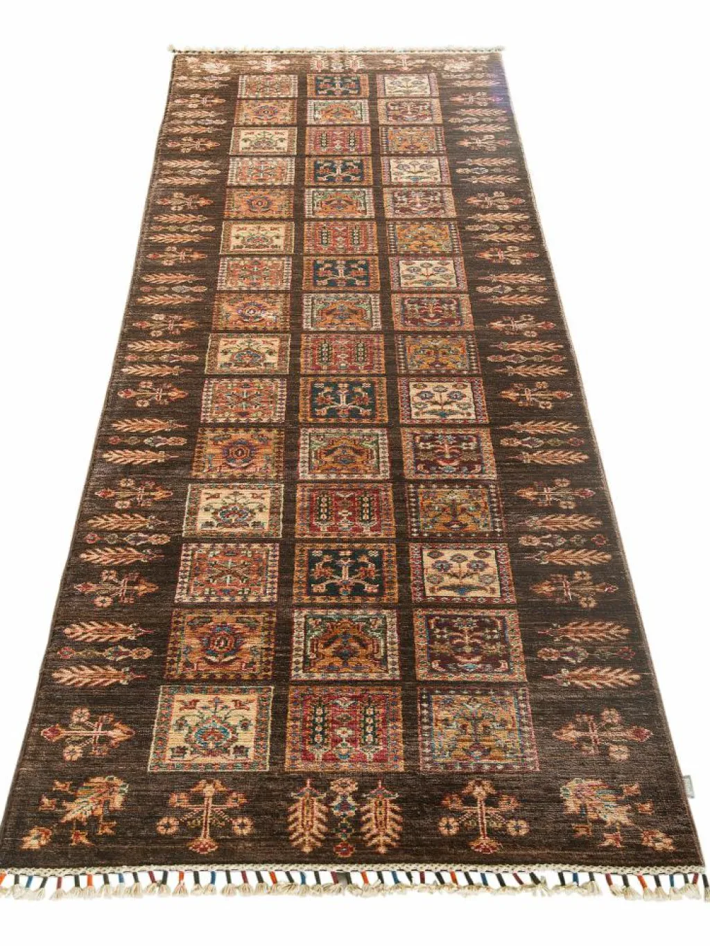 zeigt eine wunderschöne, farbenfrohe Interpretation des traditionellen, persischen Feldermusters. Das persischeFeldermuster