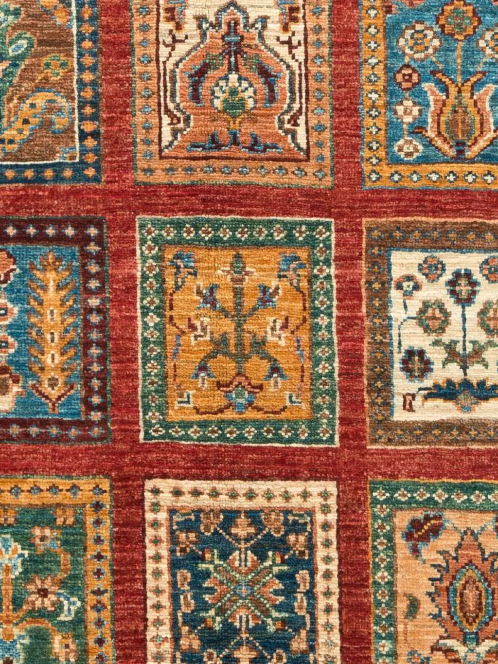zeigt eine wunderschöne, farbenfrohe Interpretation des traditionellen, persischen Feldermusters. Das persischeFeldermuster