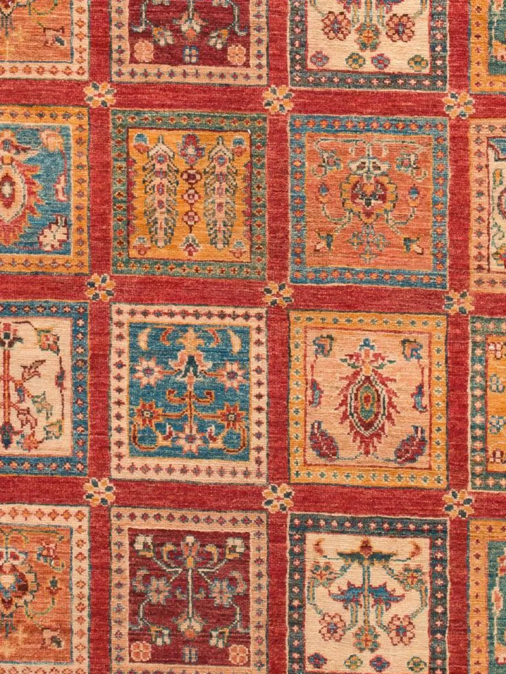 zeigt eine wunderschöne, farbenfrohe Interpretation des traditionellen, persischen Feldermusters. Das persischeFeldermuster