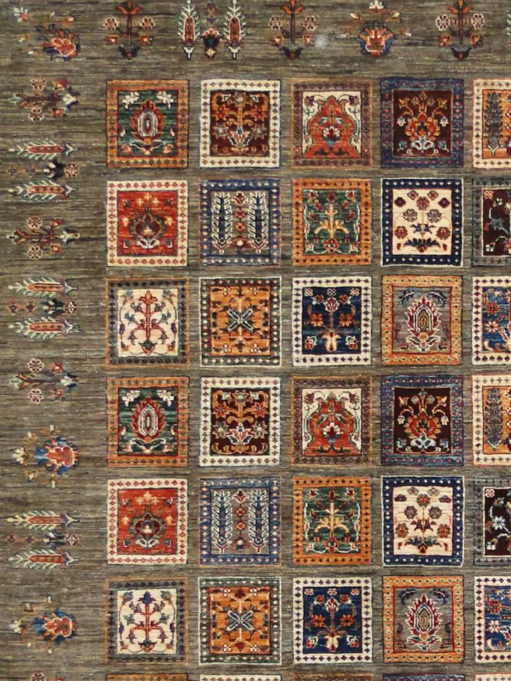 zeigt eine wunderschöne, farbenfrohe Interpretation des traditionellen, persischen Feldermusters. Das persischeFeldermuster