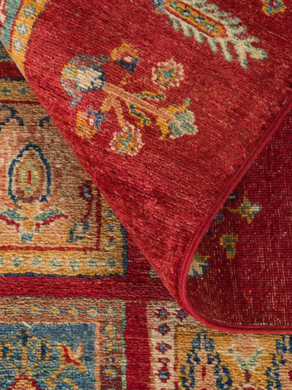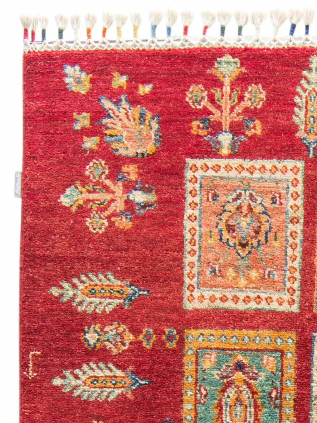 mit bunten Fäden zusammen gebunden. Durch den flachen und festen Flor ist der Teppich unempfindlich gegenüber den Belastungen des Alltags.| Gesamthöhe: | ca. 6 mm |