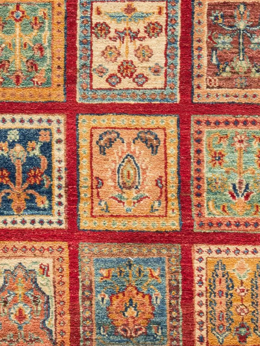 zeigt eine wunderschöne, farbenfrohe Interpretation des traditionellen, persischen Feldermusters. Das persischeFeldermuster