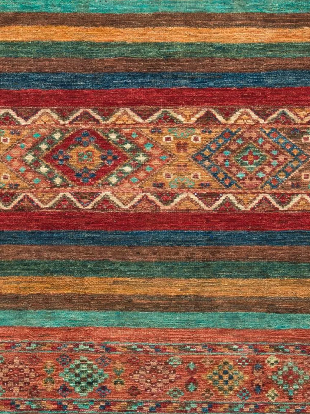 Schal sind farbenfrohe Orientteppiche mit Streifen in vielen verschiedenen Variationen. Einige Teppiche sind längs gestreift und andere quer. Vorbild für diese abwechslungsreichen Streifen ist das persischeMoharamati
