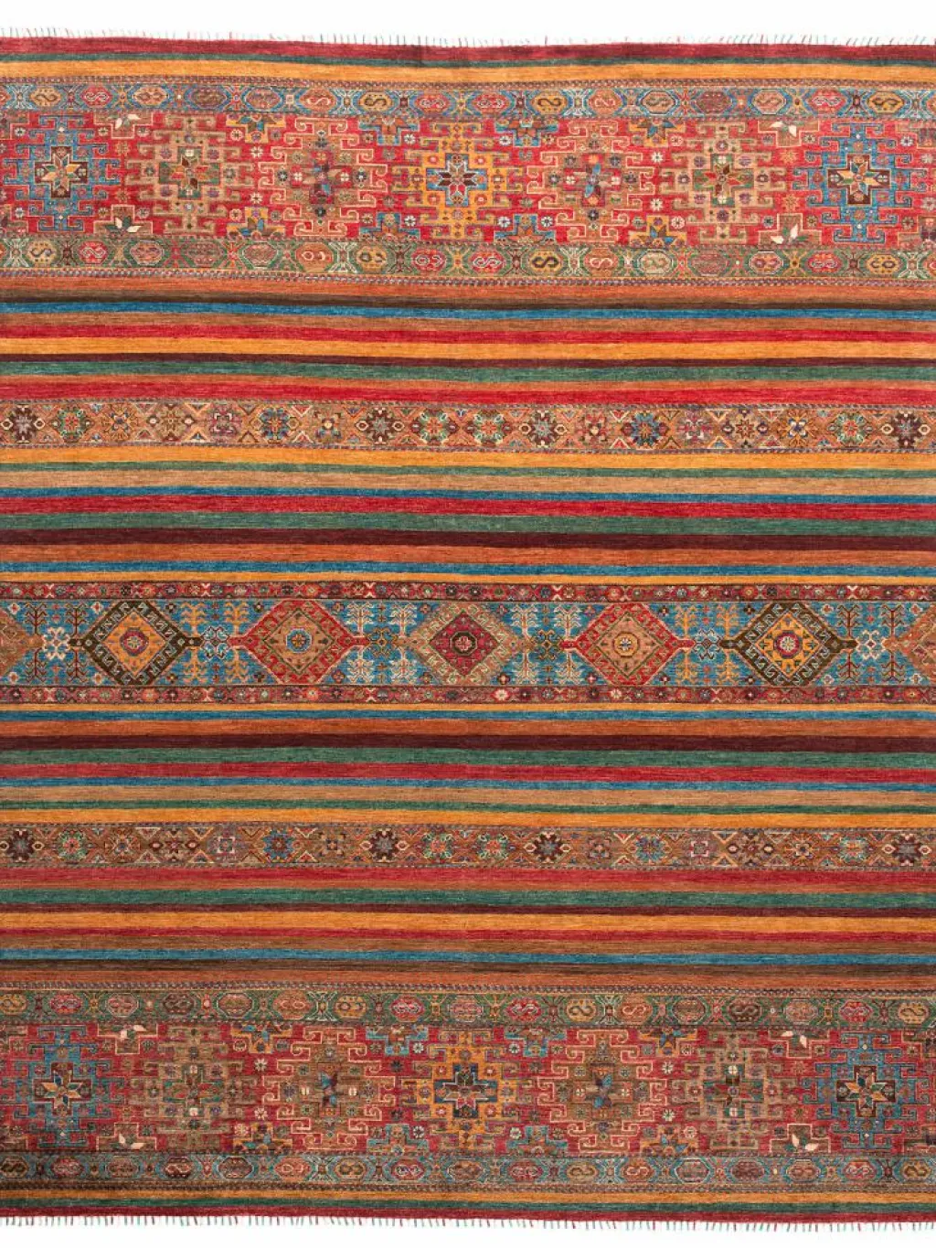 Schal sind farbenfrohe Orientteppiche mit Streifen in vielen verschiedenen Variationen. Einige Teppiche sind längs gestreift und andere quer. Vorbild für diese abwechslungsreichen Streifen ist das persischeMoharamati