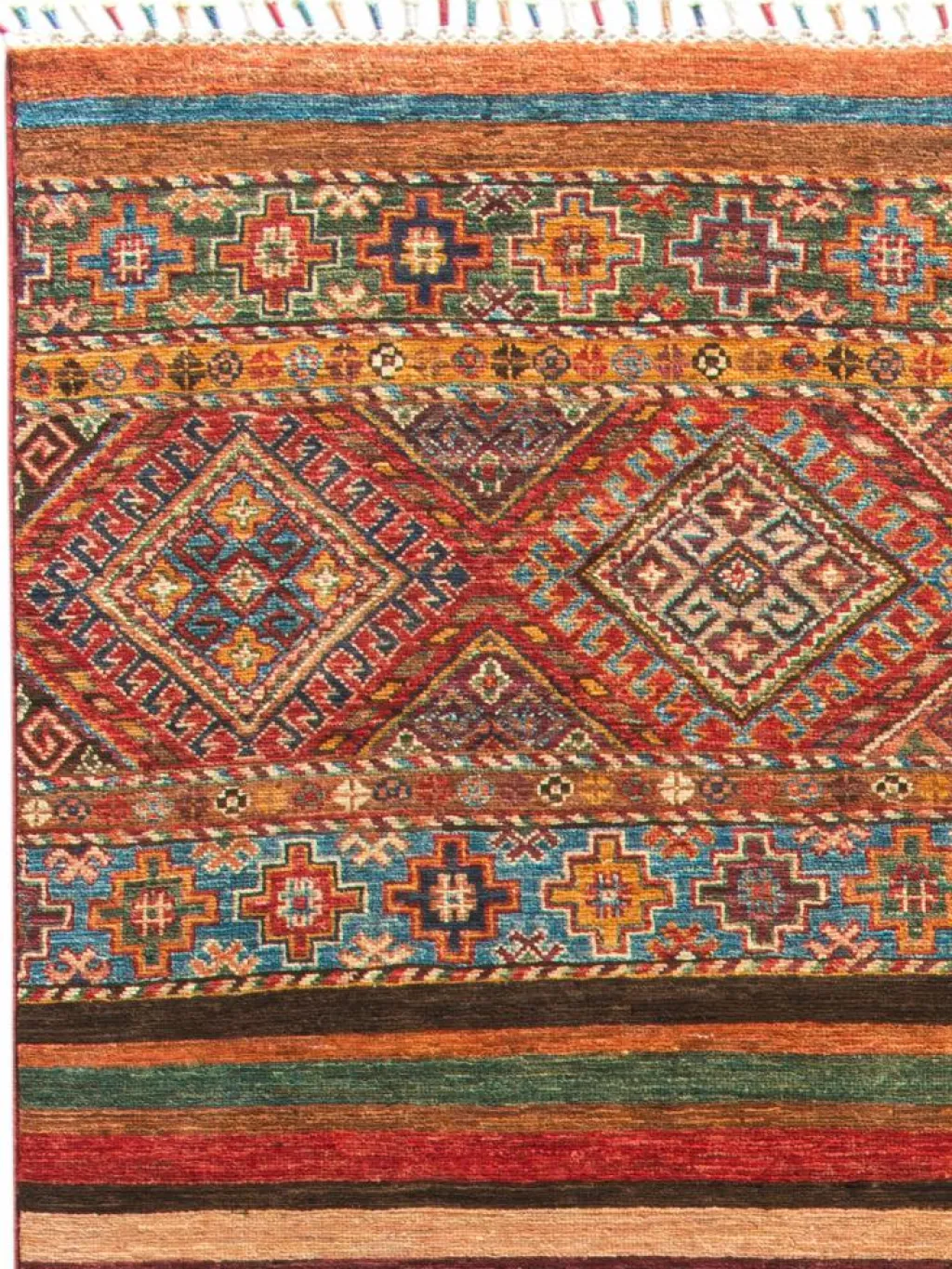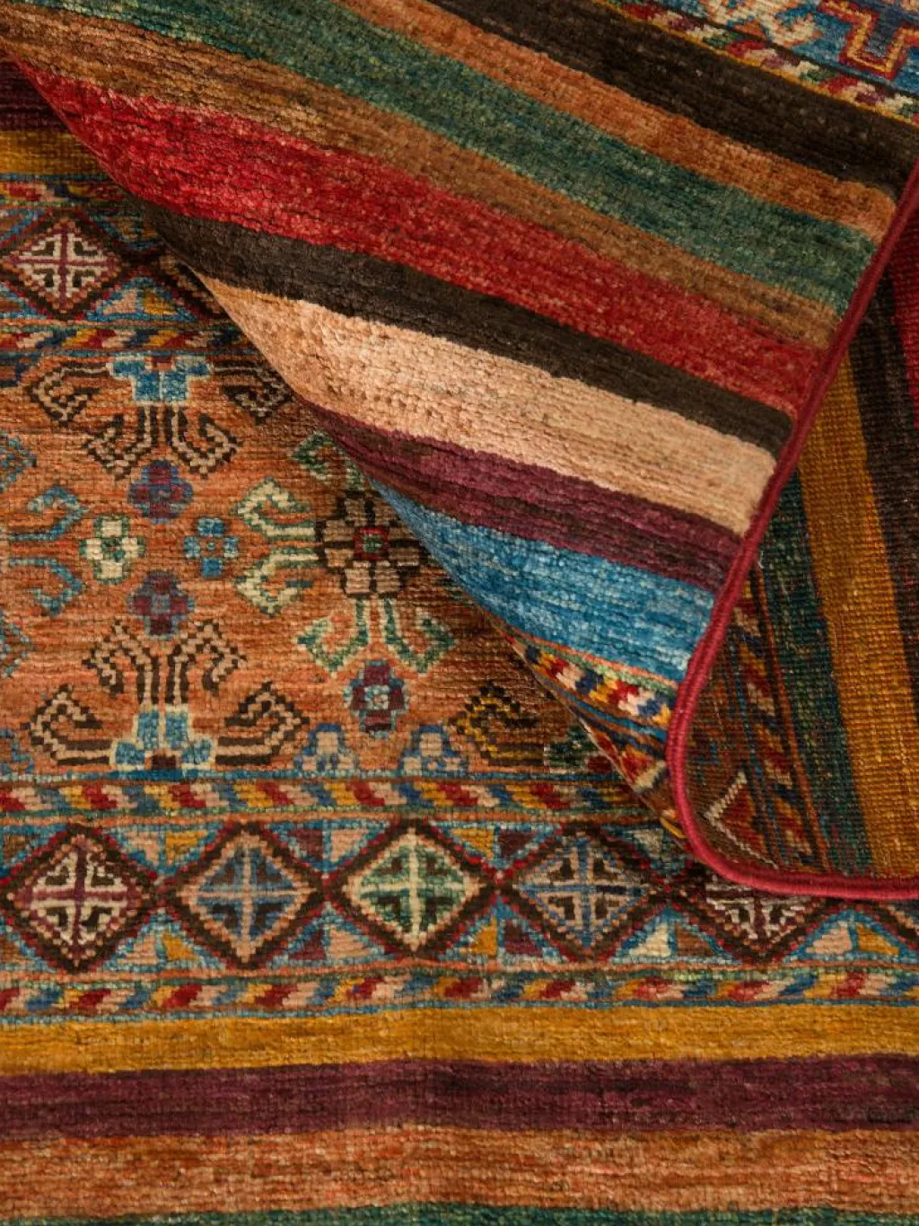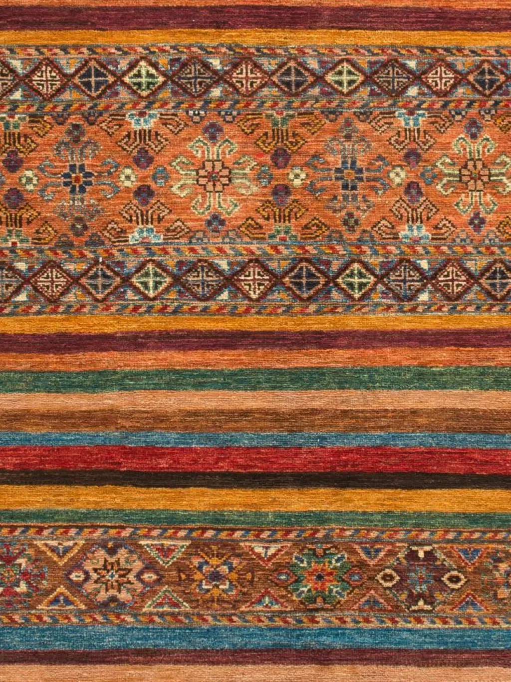 Schal sind farbenfrohe Orientteppiche mit Streifen in vielen verschiedenen Variationen. Einige Teppiche sind längs gestreift und andere quer. Vorbild für diese abwechslungsreichen Streifen ist das persischeMoharamati