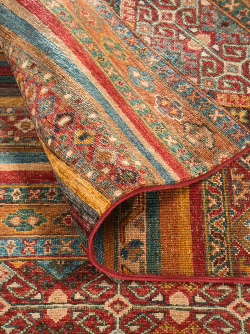 Schal sind farbenfrohe Orientteppiche mit Streifen in vielen verschiedenen Variationen. Einige Teppiche sind längs gestreift und andere quer. Vorbild für diese abwechslungsreichen Streifen ist das persischeMoharamati