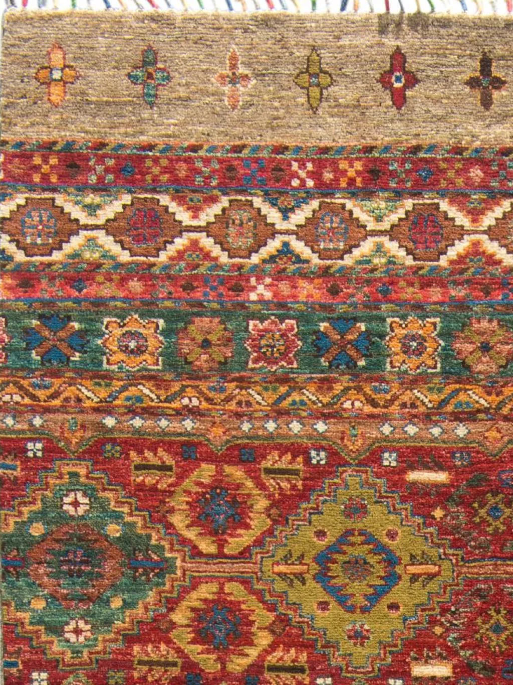 Schal sind farbenfrohe Orientteppiche mit Streifen in vielen verschiedenen Variationen. Einige Teppiche sind längs gestreift und andere quer. Vorbild für diese abwechslungsreichen Streifen ist das persischeMoharamati