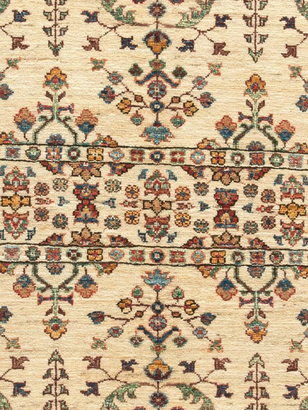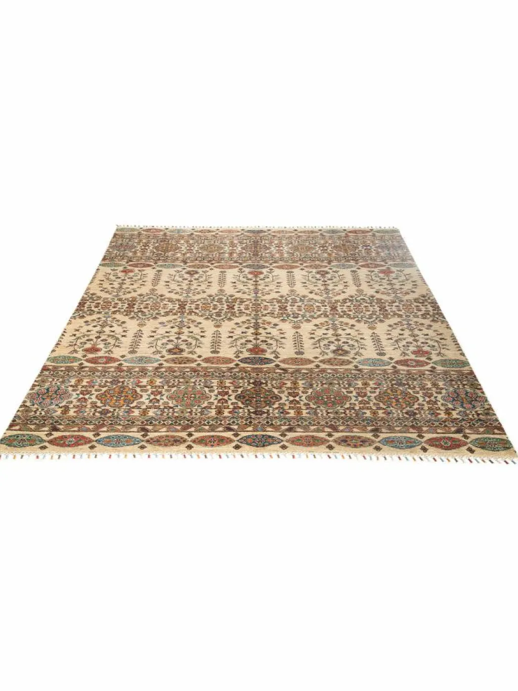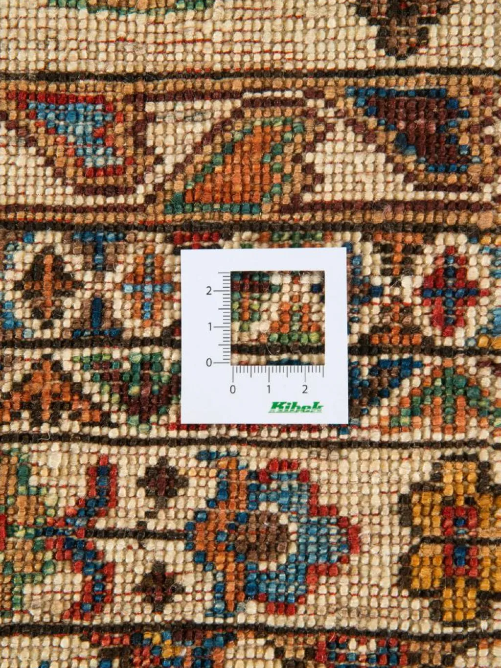 -Muster sind bunte Längsstreifen mit vielen verschiedenen Motiven gefüllt. Durch den flachen und festen Flor ist der Teppich unempfindlich gegenüber den Belastungen des Alltags.- Das Besondere an diesemOrientteppich