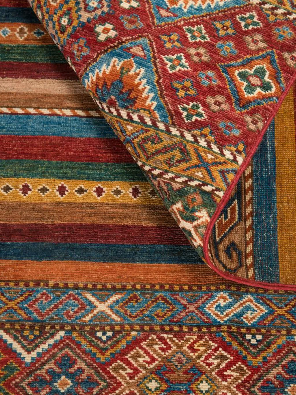 Schal sind farbenfrohe Orientteppiche mit Streifen in vielen verschiedenen Variationen. Einige Teppiche sind längs gestreift und andere quer. Vorbild für diese abwechslungsreichen Streifen ist das persischeMoharamati