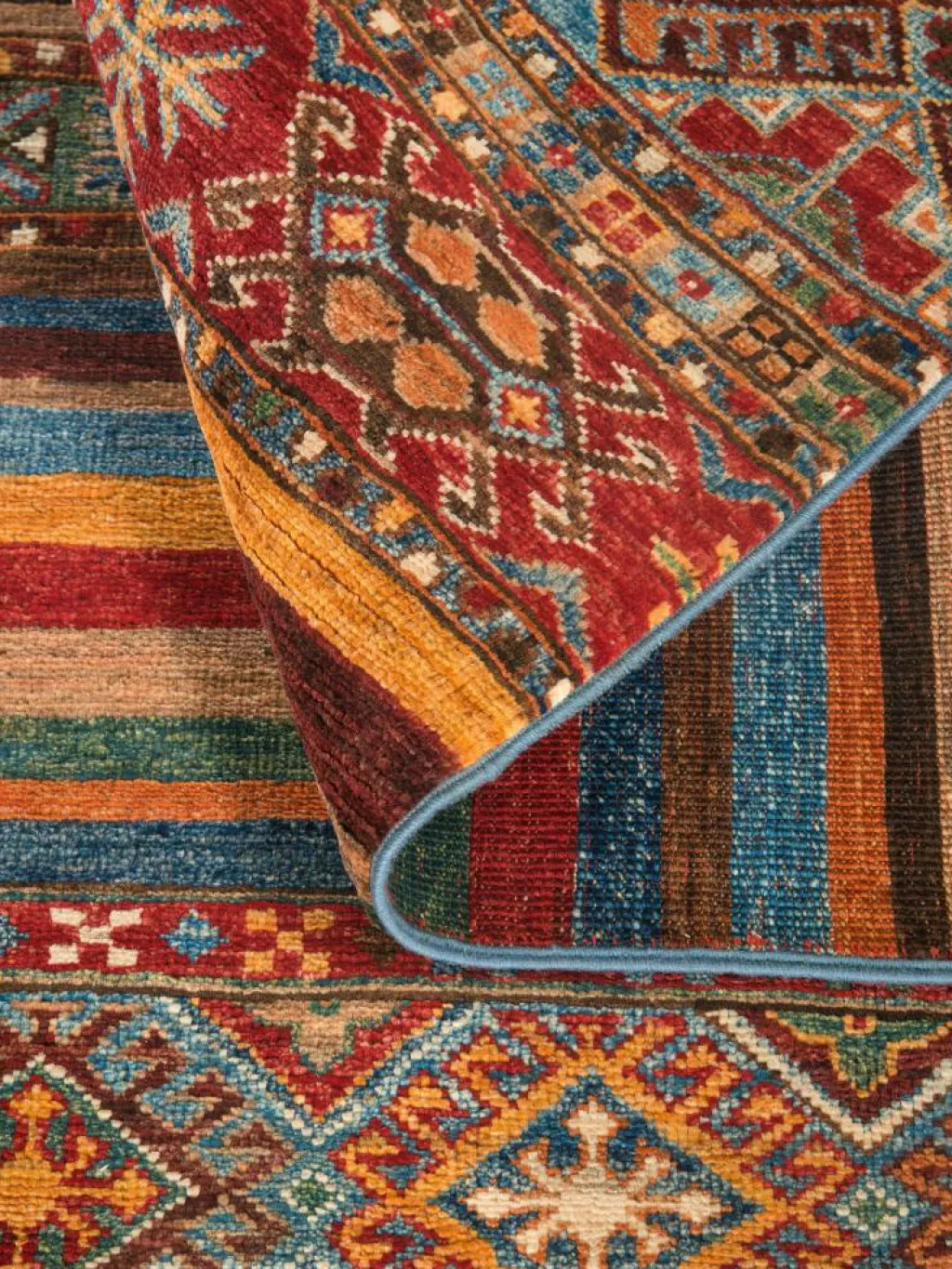 Schal sind farbenfrohe Orientteppiche mit Streifen in vielen verschiedenen Variationen. Einige Teppiche sind längs gestreift und andere quer. Vorbild für diese abwechslungsreichen Streifen ist das persischeMoharamati
