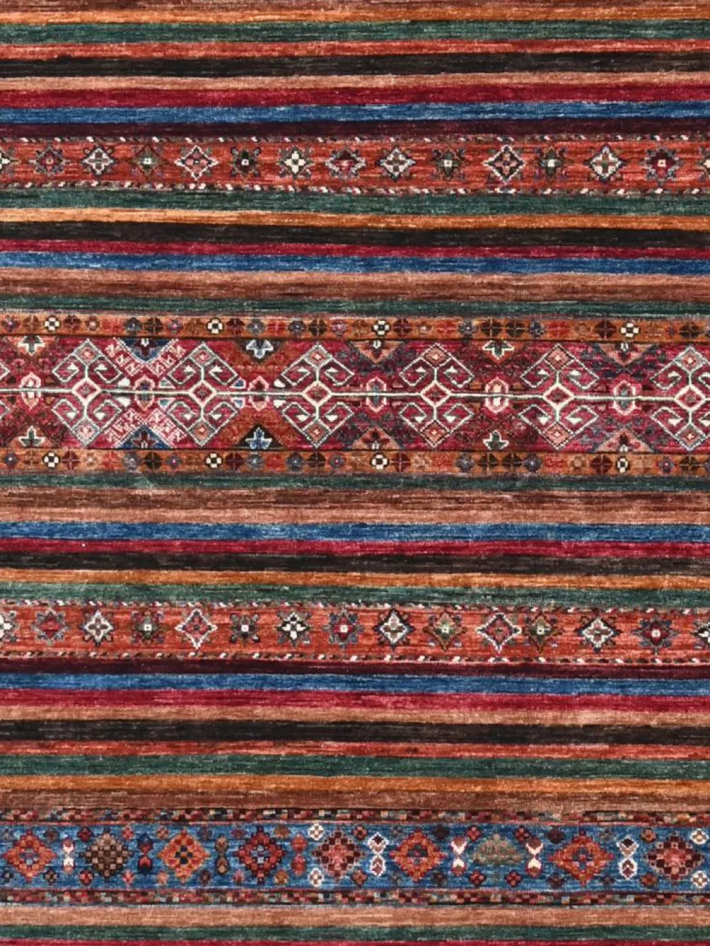 Schal sind farbenfrohe Orientteppiche mit Streifen in vielen verschiedenen Variationen. Einige Teppiche sind längs gestreift und andere quer. Vorbild für diese abwechslungsreichen Streifen ist das persischeMoharamati