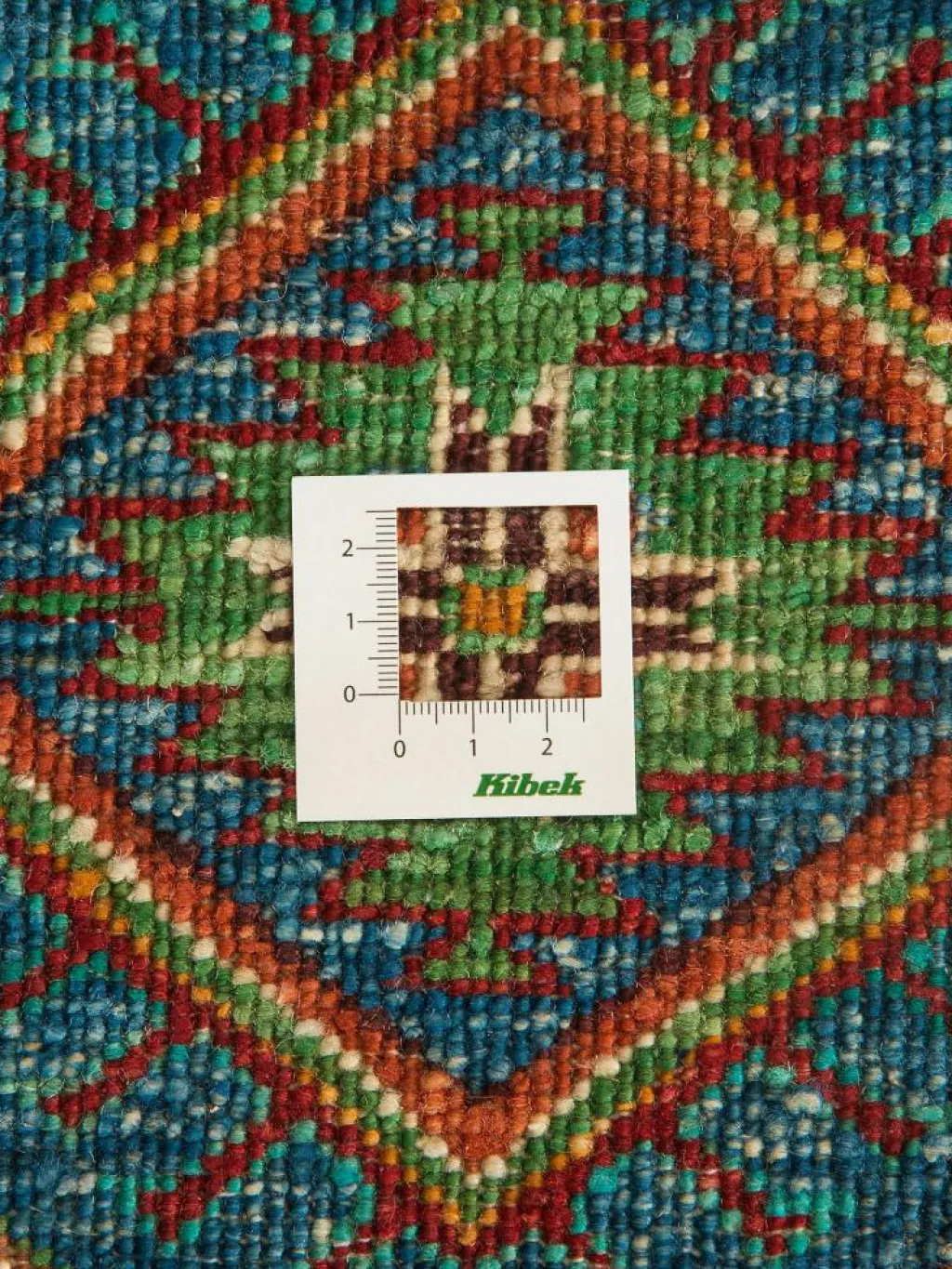 mit bunten Fäden zusammen gebunden. Durch den flachen und festen Flor ist der Teppich unempfindlich gegenüber den Belastungen des Alltags.| Gesamthöhe: | ca. 6 mm |